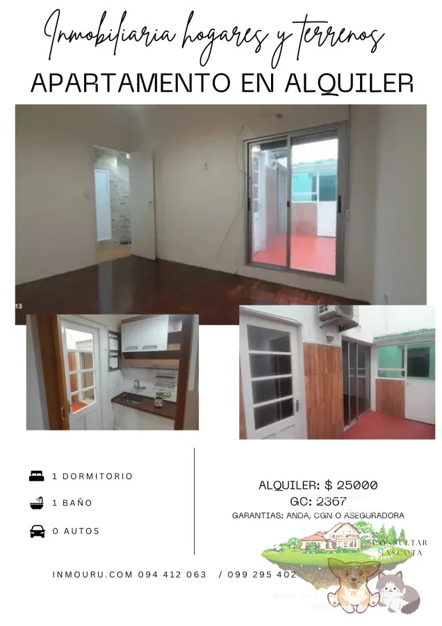 Apartamento en La Blanqueada - Montevideo (P. Ecuador Núñez esquina Centenario) Unidad de 1 dormitorio, 1 baño, cocina definida, living comedor. Alquiler: $ 25000 Gastos comunes : $ 2367 Garantías: CGN, Anda, Sura o Mapfre Consulte con nuestros asesores. Referencia Interna : Tera-1745