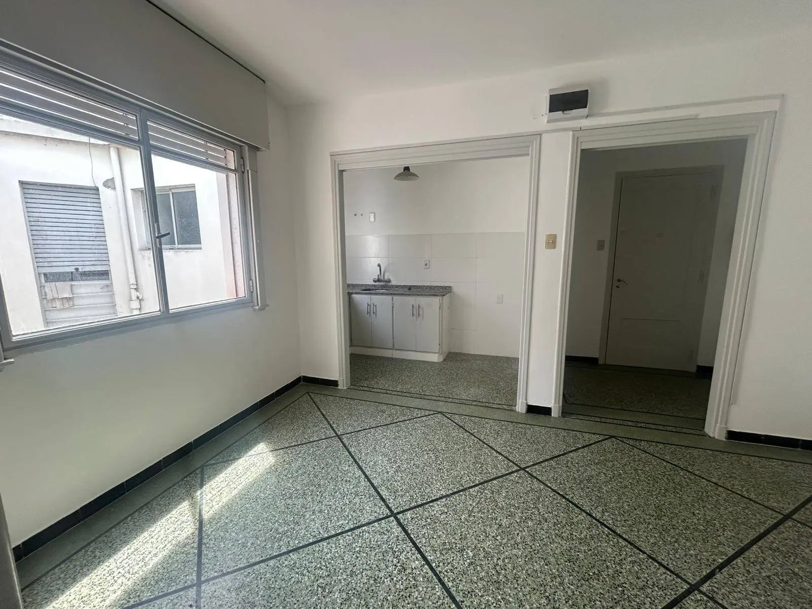 Apartamento en primer piso por escalera. 1 dormitorio luminoso con piso de parquet. Living comedor. Cocina reciclada con placard bajo mesada. Baño completo, tambien reciclado. Y acceso a azotea comun para tendido de ropa. -