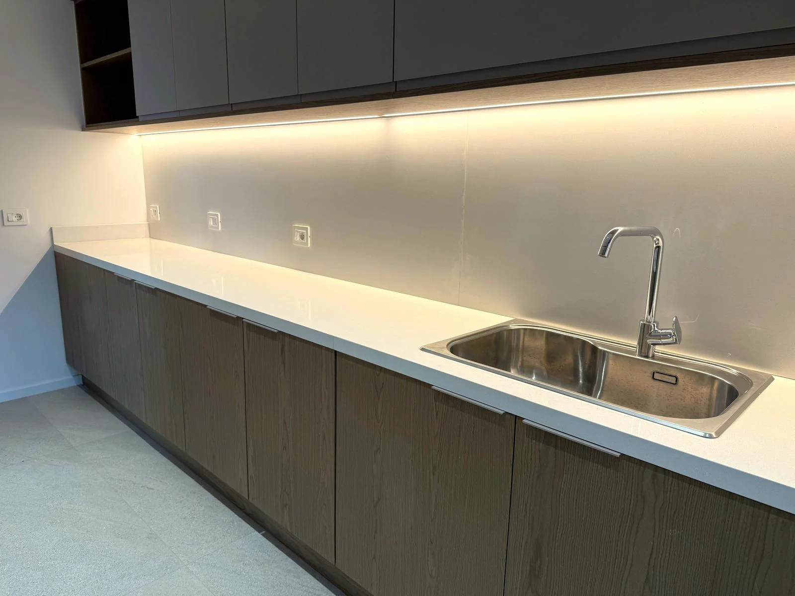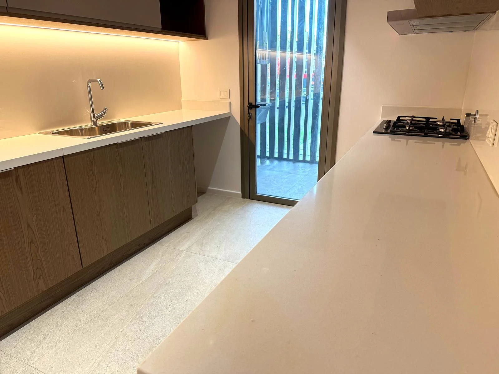 La cocina definida, equipada con doble mesada de Silestone y una gran cantidad de armarios. Incluye cocina, horno y campana. Además, tiene una amplia terraza lavadero con caldereta dual para calefacción y agua caliente.
