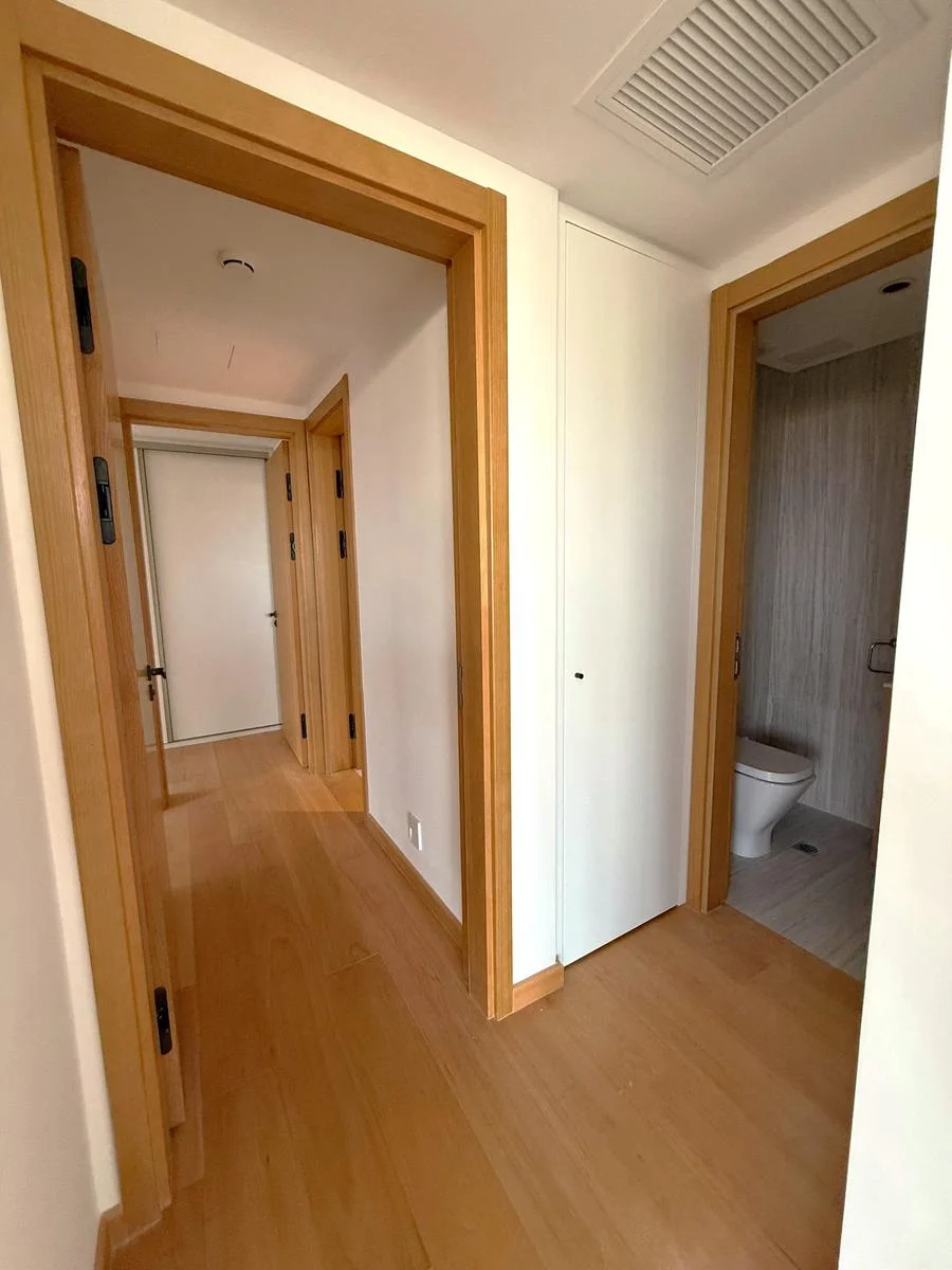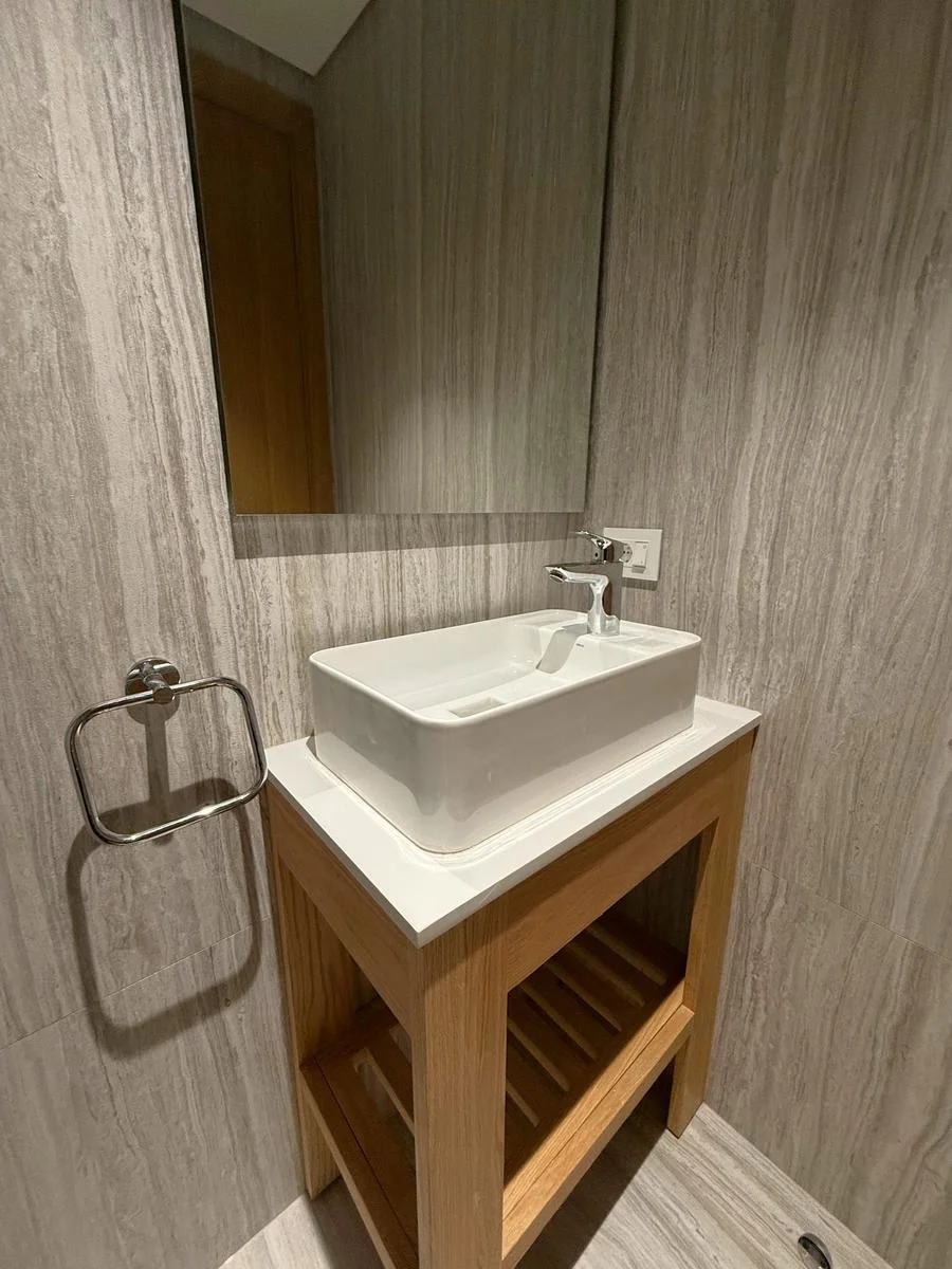 Dos amplios dormitorios: uno con armarios empotrados y el otro en suite, con varios armarios. El baño en suite incluye doble pileta. Además, hay un segundo baño completo.