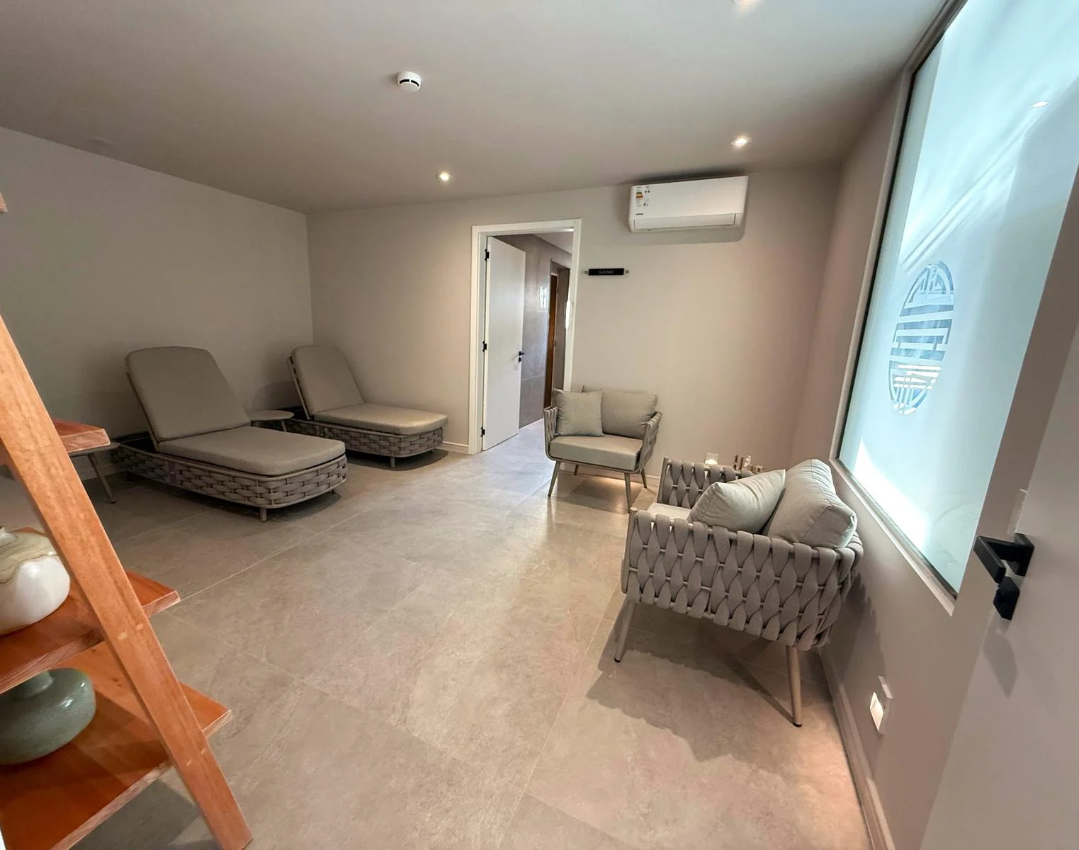 * Wellness & Spa: Circuito de hidroterapia terapéutica, sala de masajes, sauna seco, sala de relax, sala de gimnasia, estiramiento y meditación, consultorio médico Alive Path: camino de contraste térmico para activar el metabolismo y fortalecer el sistema inmunológico.