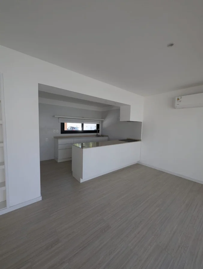 * Planta Baja (PB): Amplio y soleado estar con pisos de simil madera y una elegante estufa de alto rendimiento. Gran ventanal corredizo con salida al patio. Cocina semi integrada mediante una moderna barraisla con mesadas claras y muebles minimalistas.