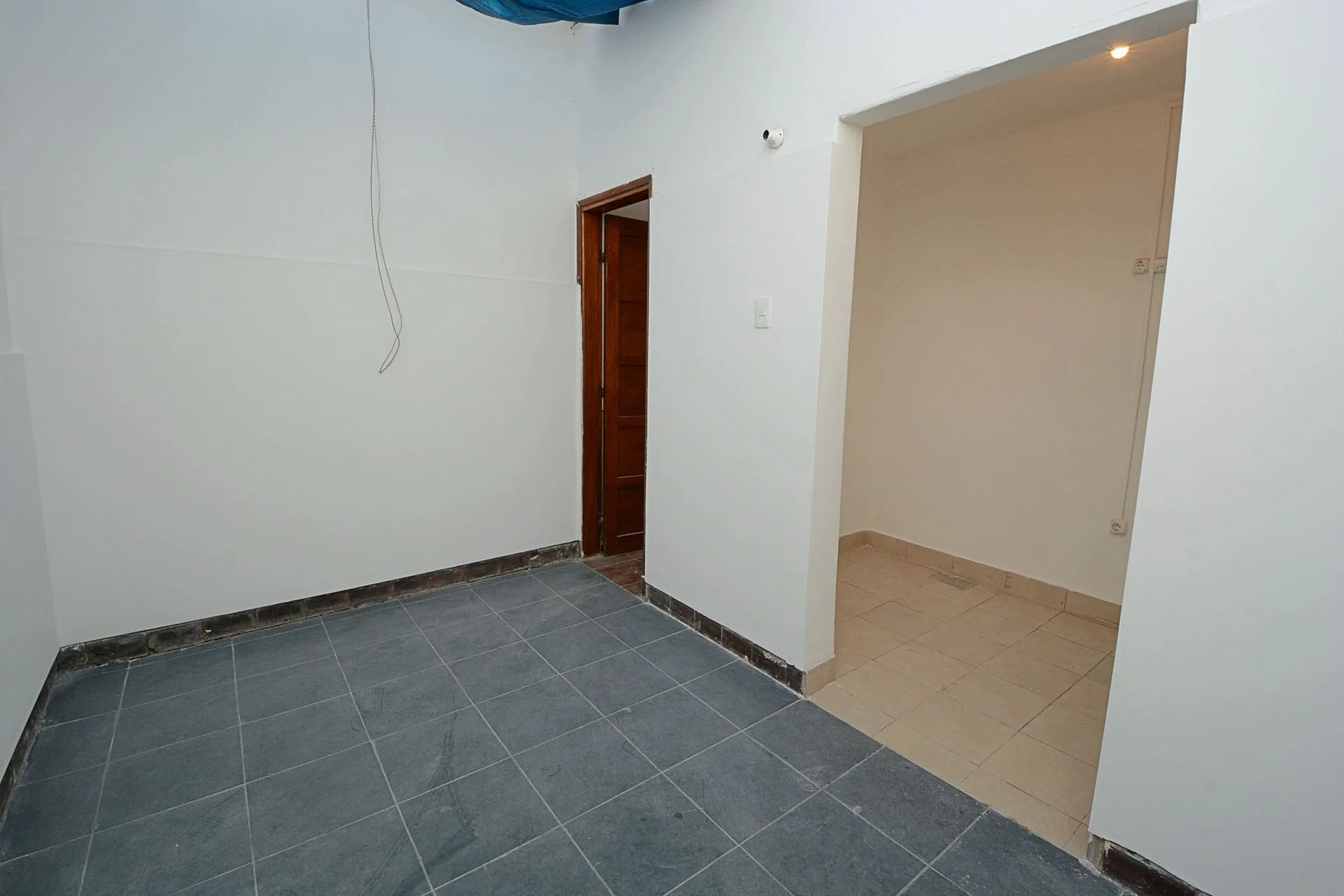 Se ingresa a recibidor mediante puerta de madera protegida con sobrepuerta de reja. Una puerta intermedia nos lleva a pasillo de distribución.