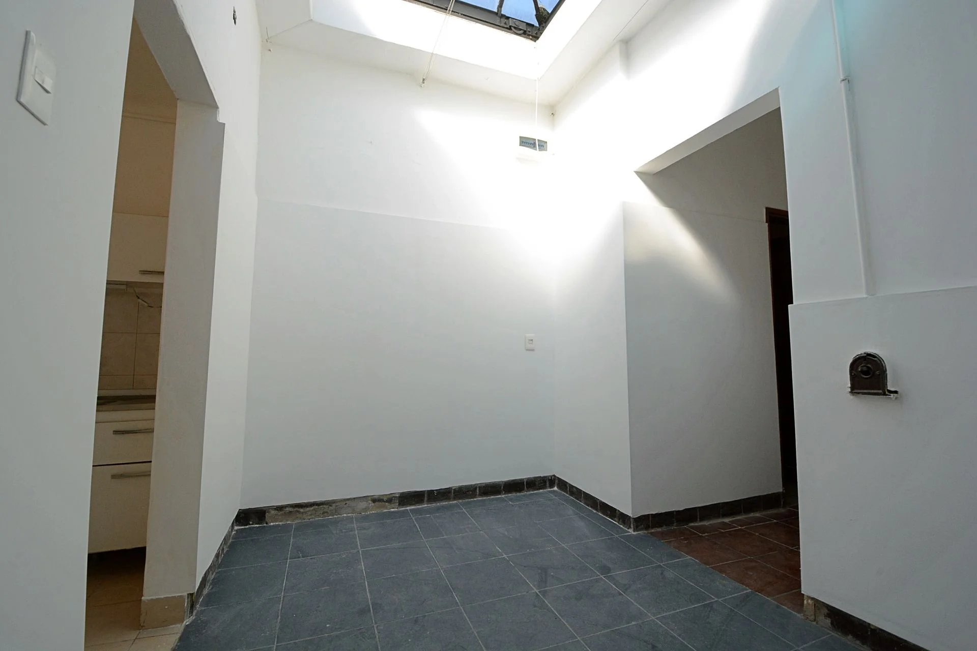 El pasillo desemboca en un estar con claraboya desde el cual se accede a la cocina semi integrada.