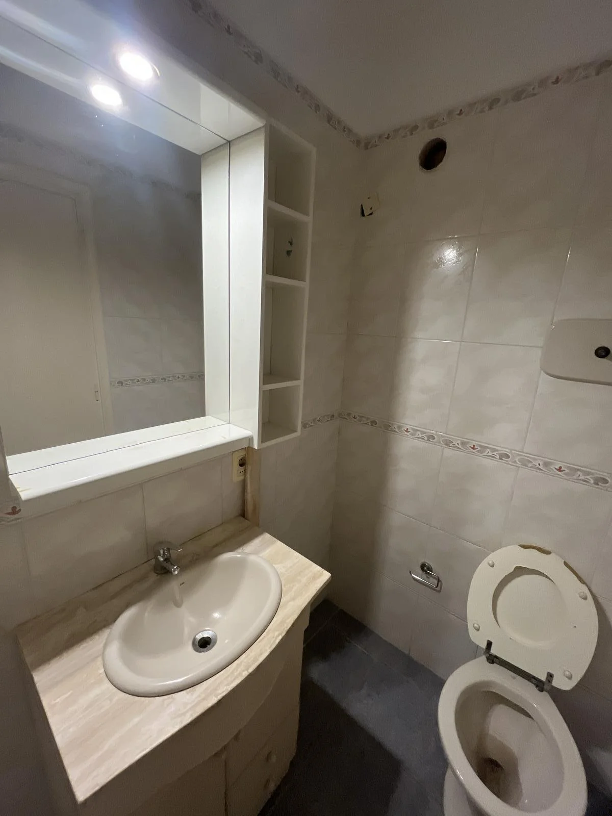 Baños: Dos en total. Baño principal con mampara instalada y baño social ubicado en el sector de la cocina.