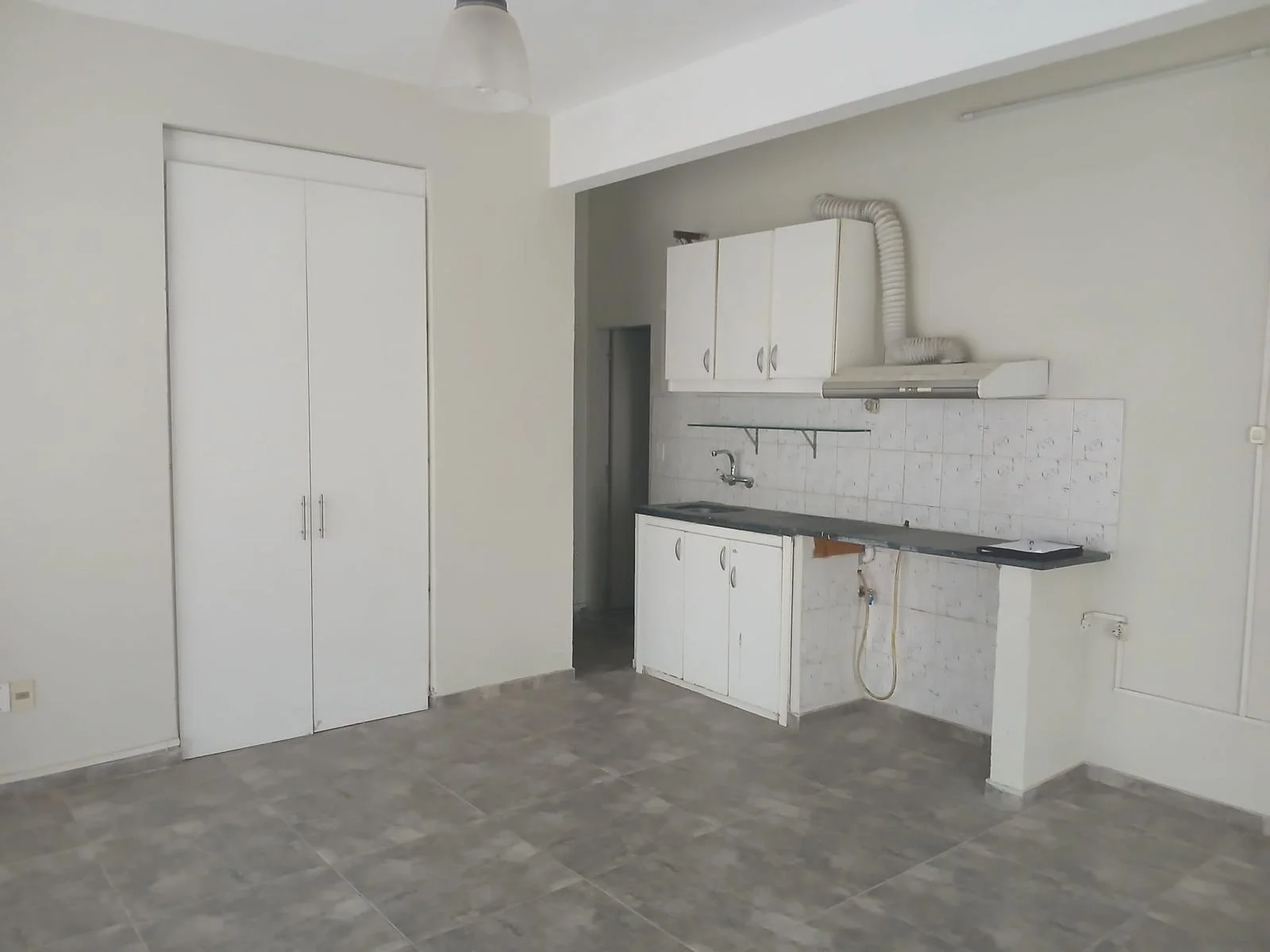 Kitchenette con mesada, conexión para lavadora y purificador de cocina.
