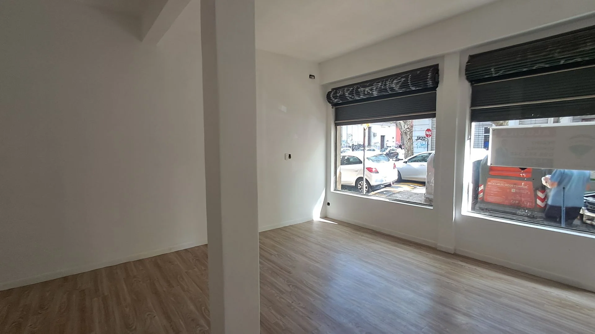 Tiene dos hermosos ventanales de vidrio que dan a la calle Juan Paullier.