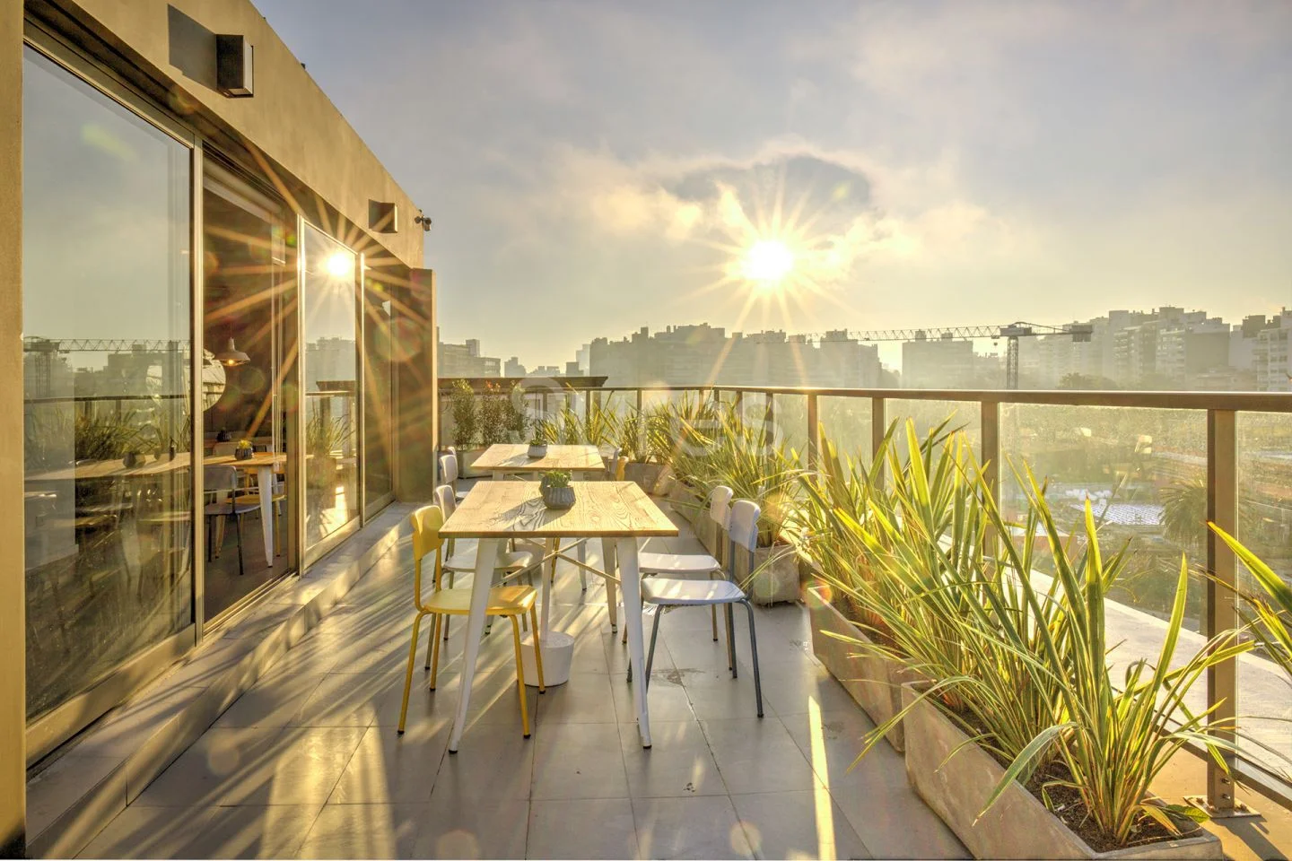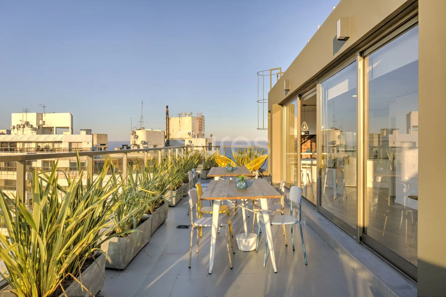 El ultimo piso cuenta con un open lounge equipado, de libre acceso con una amplia terraza que ofrece vistas panorámicas de la Rambla y del Parque.