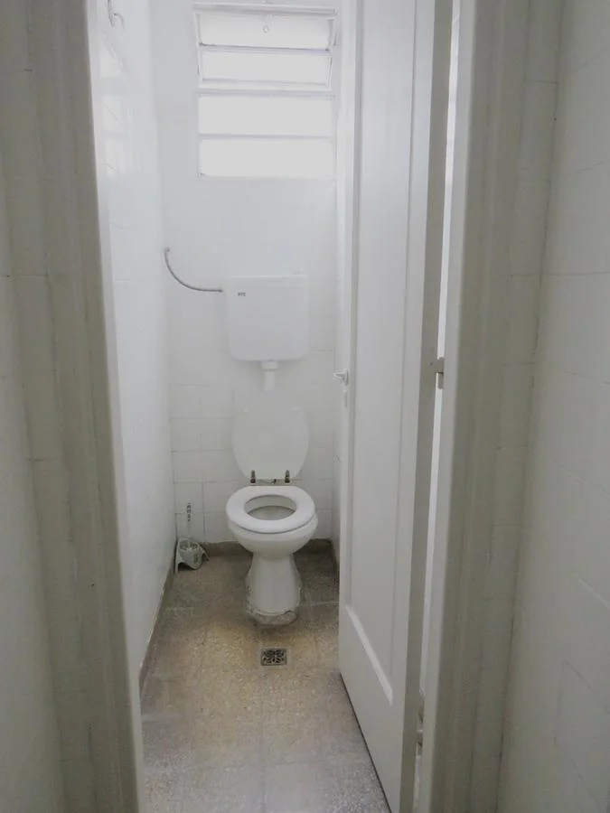 3 baños, uno en la misma planta compartido con una sola oficina, dos baños más y cocina compartida en primer piso