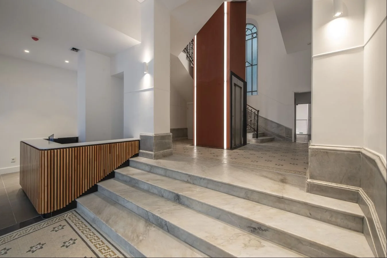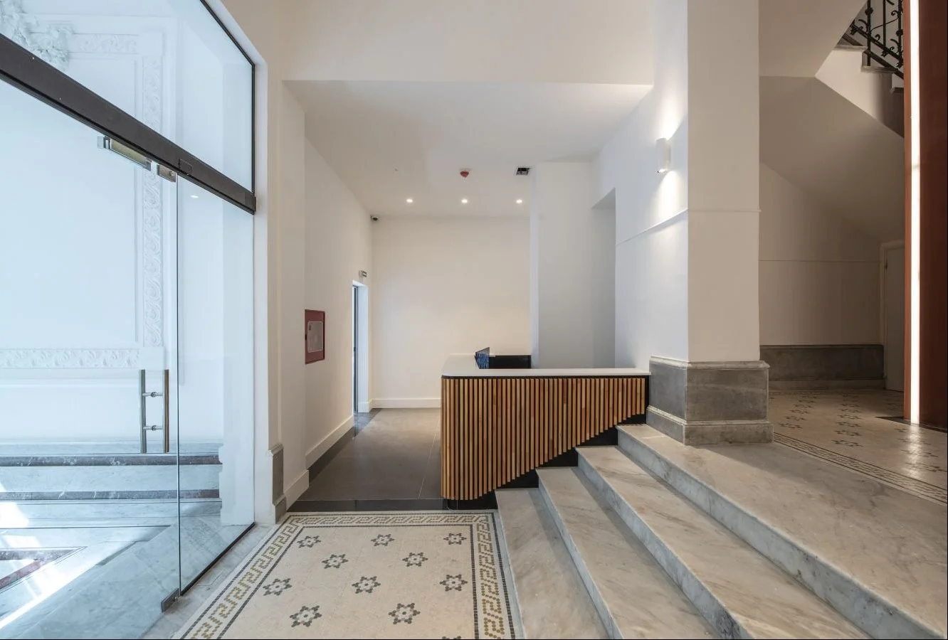 Se trata de un edificio corporativo que cuenta con importante hall de ingreso y amplio local comercial esquina. 4 plantas de aprox. 350 m.c. cada una. más áreas comunes. Todo el edificio fue integramente reciclado, sustituyendo todas las instalaciones.