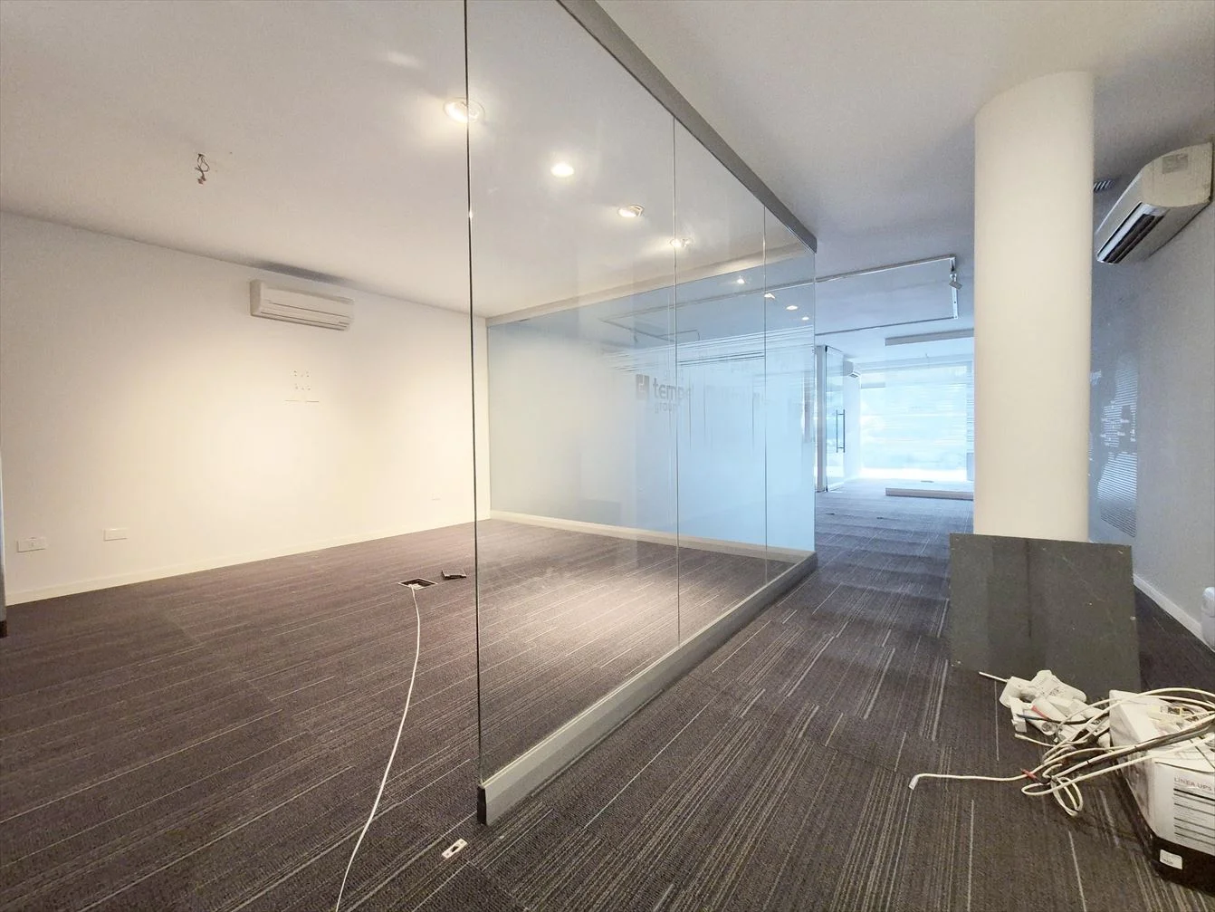Piso técnico, moquette, aire acondicionado split.