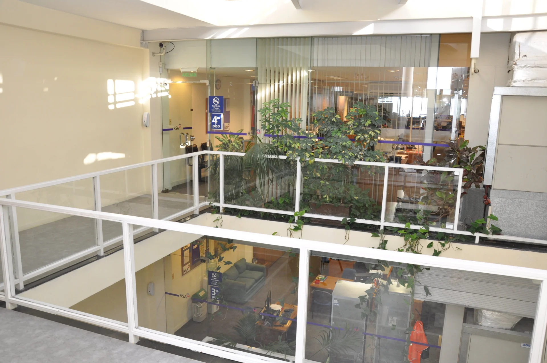 Cuenta con 5 pisos de oficinas además de planta baja y subsuelo. 9 baños distribuidos por cada una de las plantas. En subsuelo, cocina, comedor diario y jardín interno.
