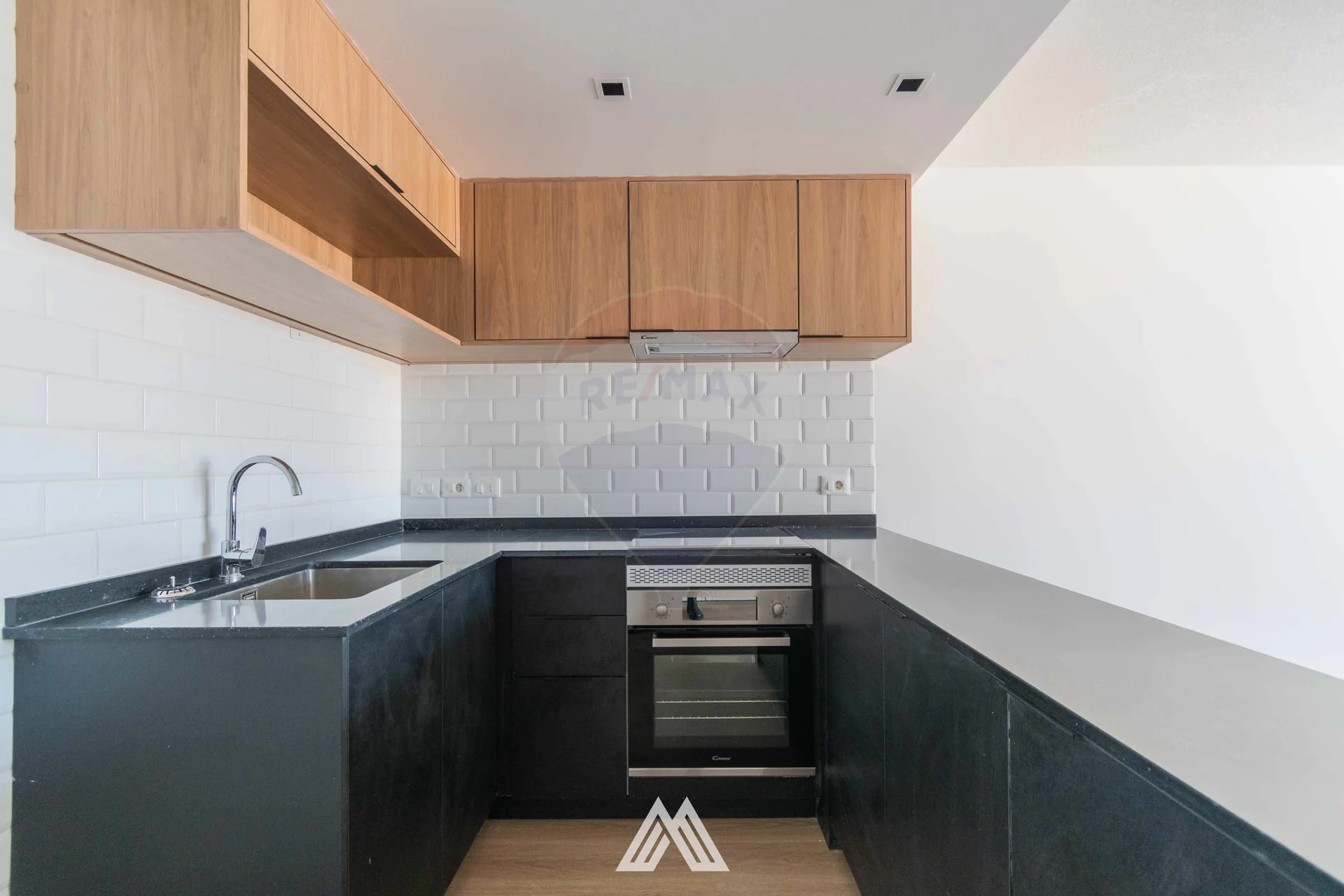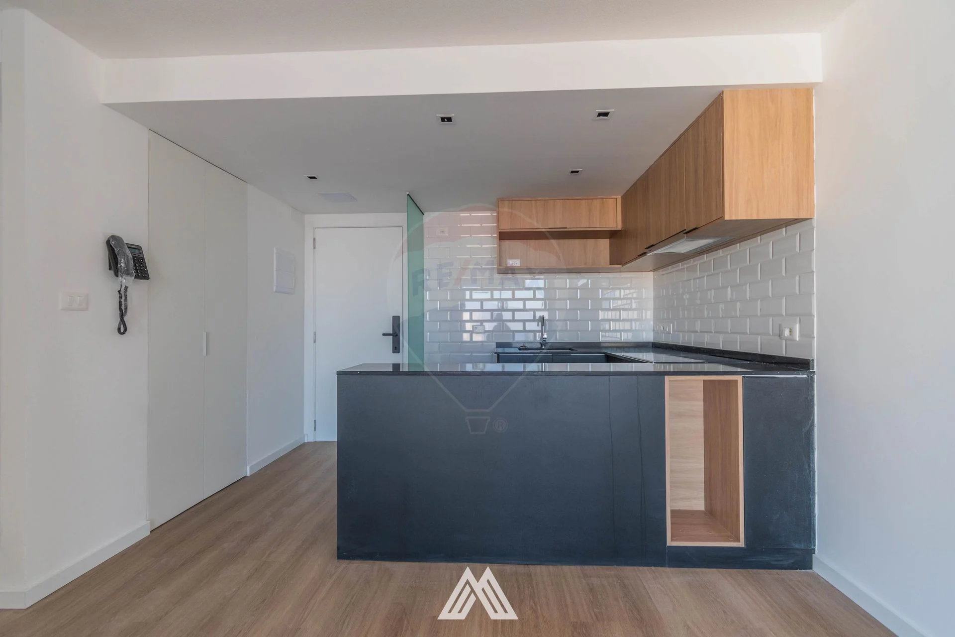 La cocina cuenta con muebles aéreos y bajo mesada, una barra que se integra perfectamente con el living comedor, además cuenta con un vidrio esmerilado que cubre el lateral de la heladera lo cual ayuda estéticamente.