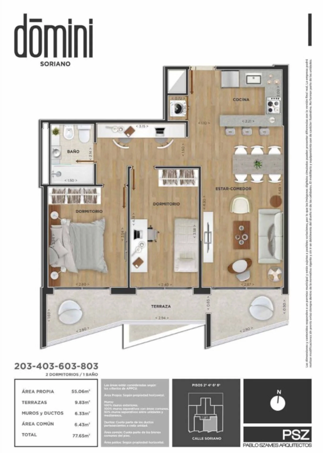 Domini Soriano // Ubicado en pleno centro de Montevideo, con rápido acceso a la Rambla y próximo a todos los servicios estatales, educativos y financieros de la ciudad. A minutos de Ciudad Vieja, Tres Cruces, Parque Rodó y Pocitos. Lo que implica que podrás aprovechar tu día al máximo resolviendo todo dentro de la misma zona. 57 apartamentos de muy cómodas dimensiones: 27 unidades de 1 dormitorio, 2 unidades de 3 dormitorios y 1 de 2 dormitorios en el penthouse con parrillero de uso exclusivo. Garajes y un garaje accesible para ascenso y descenso de discapacitados.