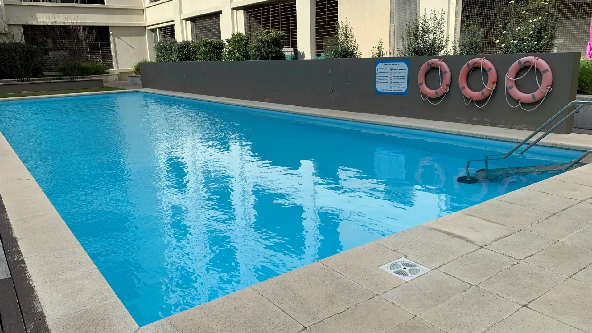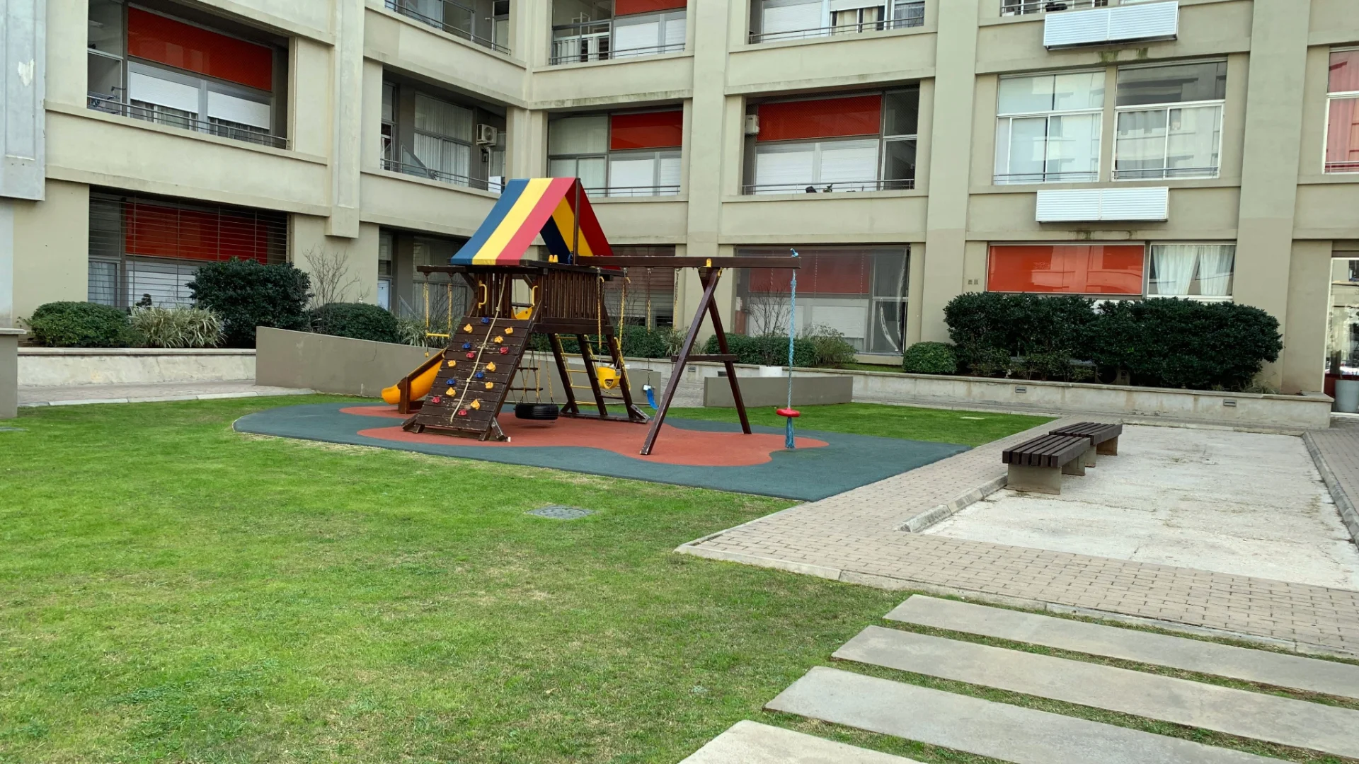 Frente al MAM.Precioso apartamento 1ero. por ascensor, Amplio living-comedor con aire acondicionado, salida a terraza apaisada, cocina cómoda con placares, calefón, dos dormitorios, uno de ellos también con aire y baño con mampara.El edificio cuenta con todas la comodidades y seguridad.$ 31.000 + $ 8000 de gtos comunes. Vigilancia 24 hs. , piscina climatizada, lugar de juegos para niños, salón de uso común, barbacoa, lavadero.