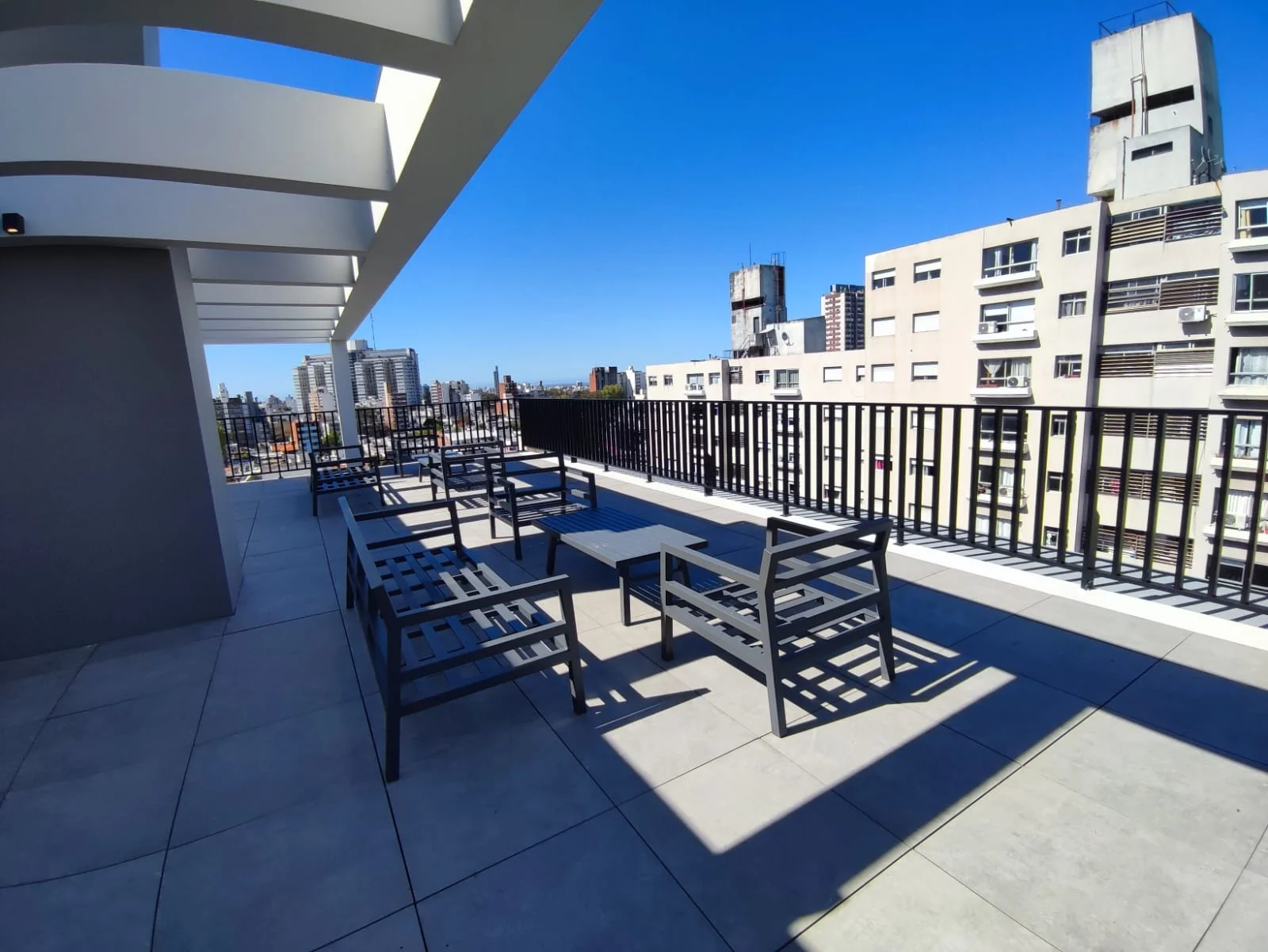 Bastante amplio e iluminado, con balcón al frente, ubicado en el piso 5, además tiene conexión para lavarropas en la unidad y entre las amenities cuenta el edificio con área de lavandería, barbacoa, gimnasio, cowork, solarium, área de guardado para bicicletas, recepción y circuito cerrado de cámaras de seguridad.
