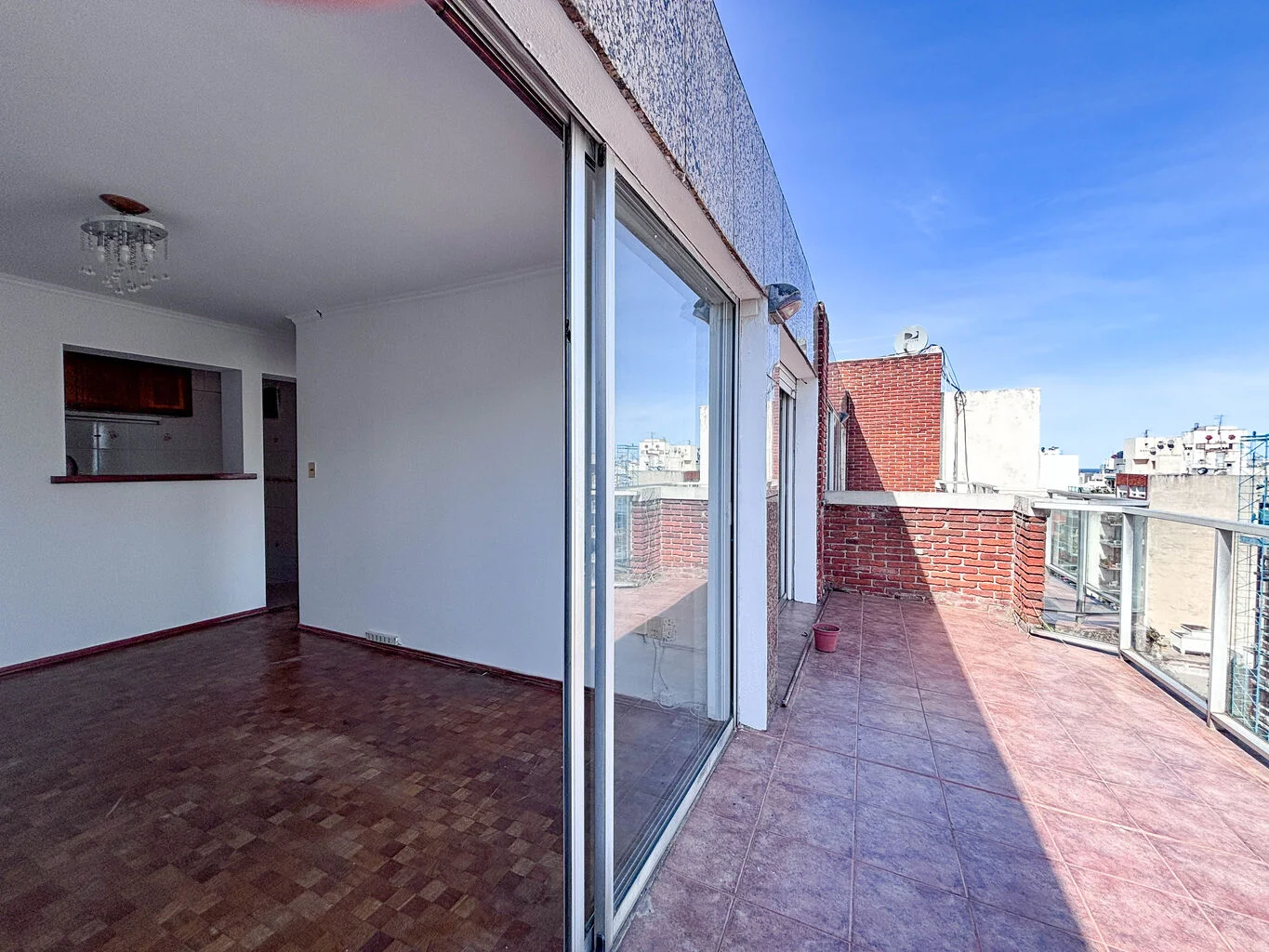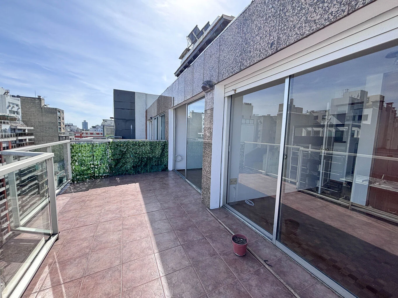 Se trata de un apartamento penthouse en piso 10. Se distribuye en 28 m2 más gran terraza de uso exclusivo de 15 m2 con vista totalmente despejada lo que le permite el ingreso de muy buena luz a todo el apartamento.