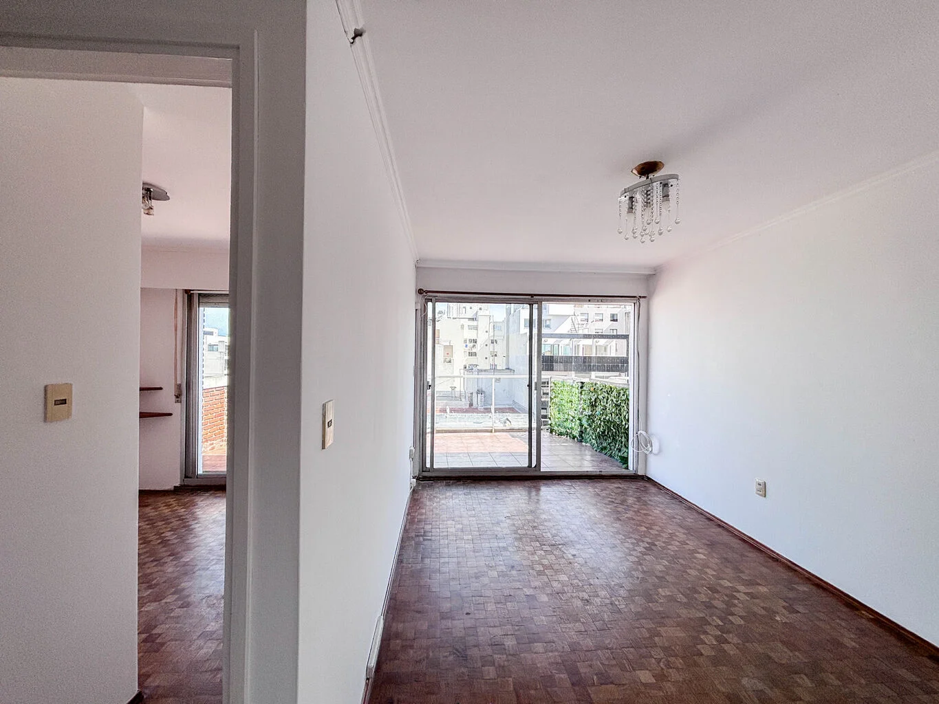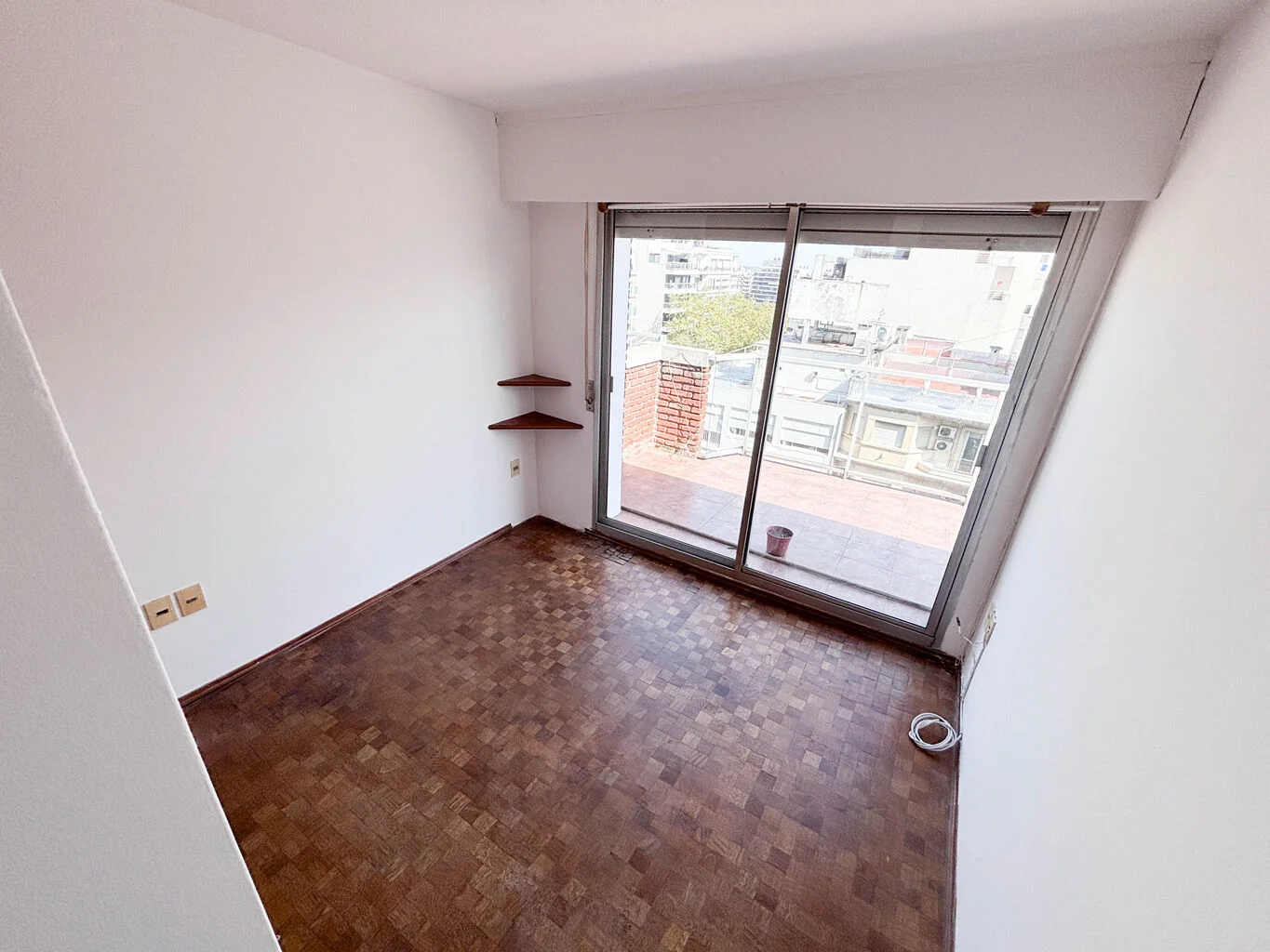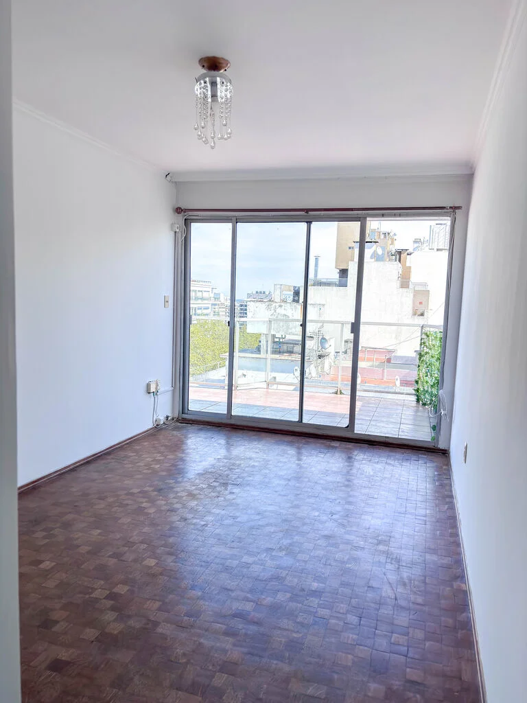 La unidad cuenta con living comedor, cocina definida con pasaplato, un dormitorio con placar y un baño completo. Los pisos son de parque. Tanto el dormitorio como el living tienen salida por ventanal a la terraza. El dormitorio no es muy amplio, entra una cama doble común, más grande no.