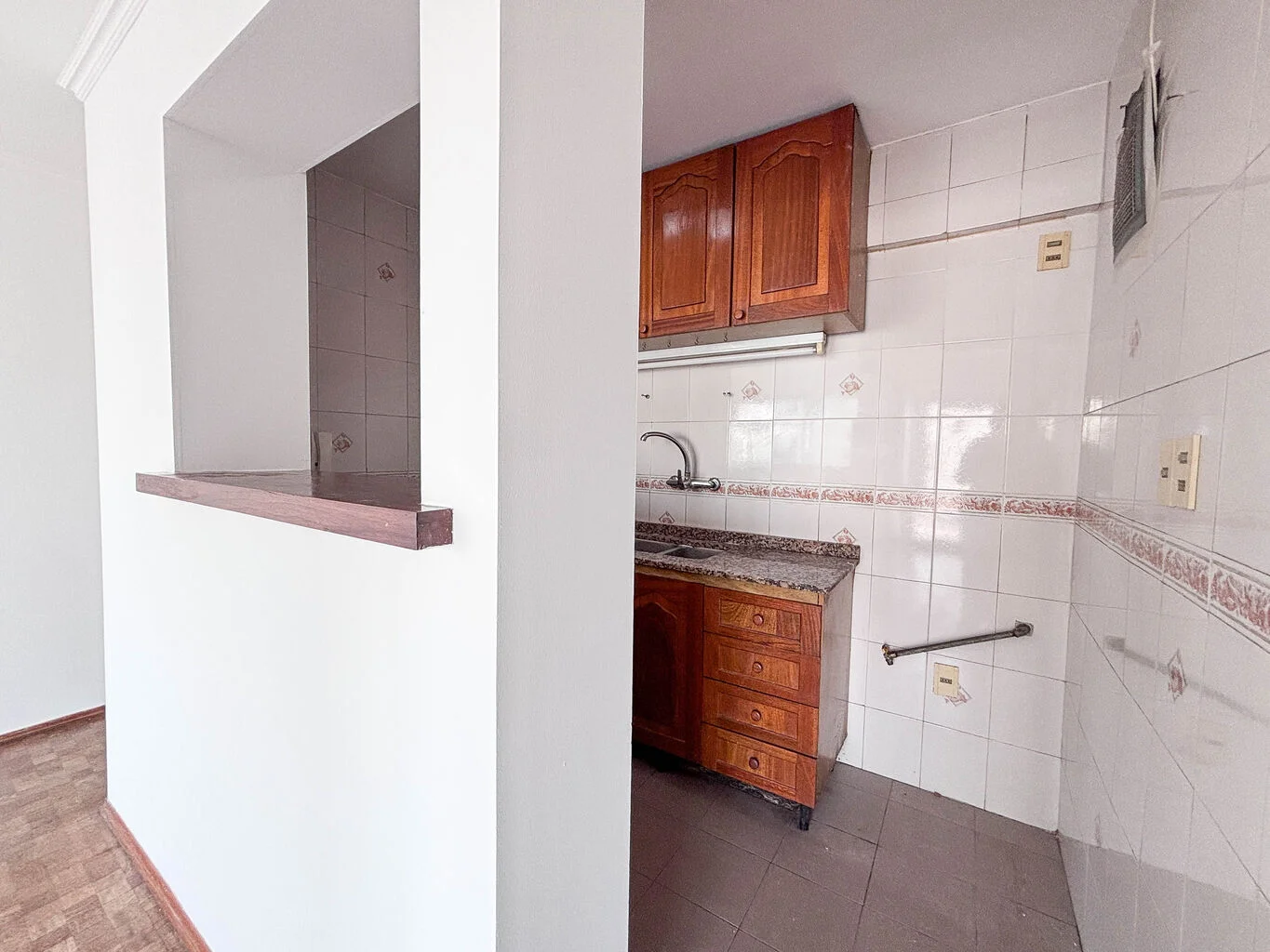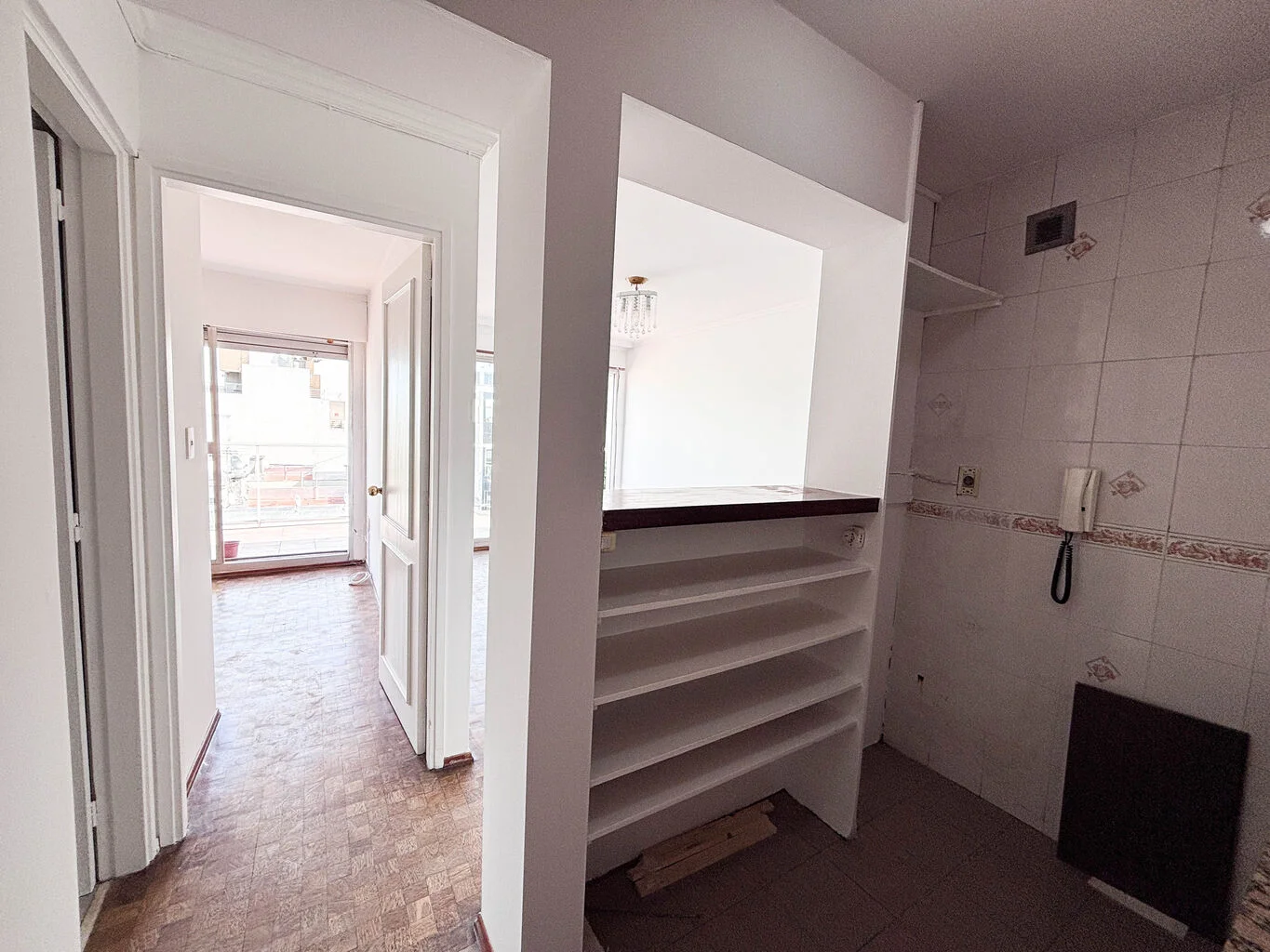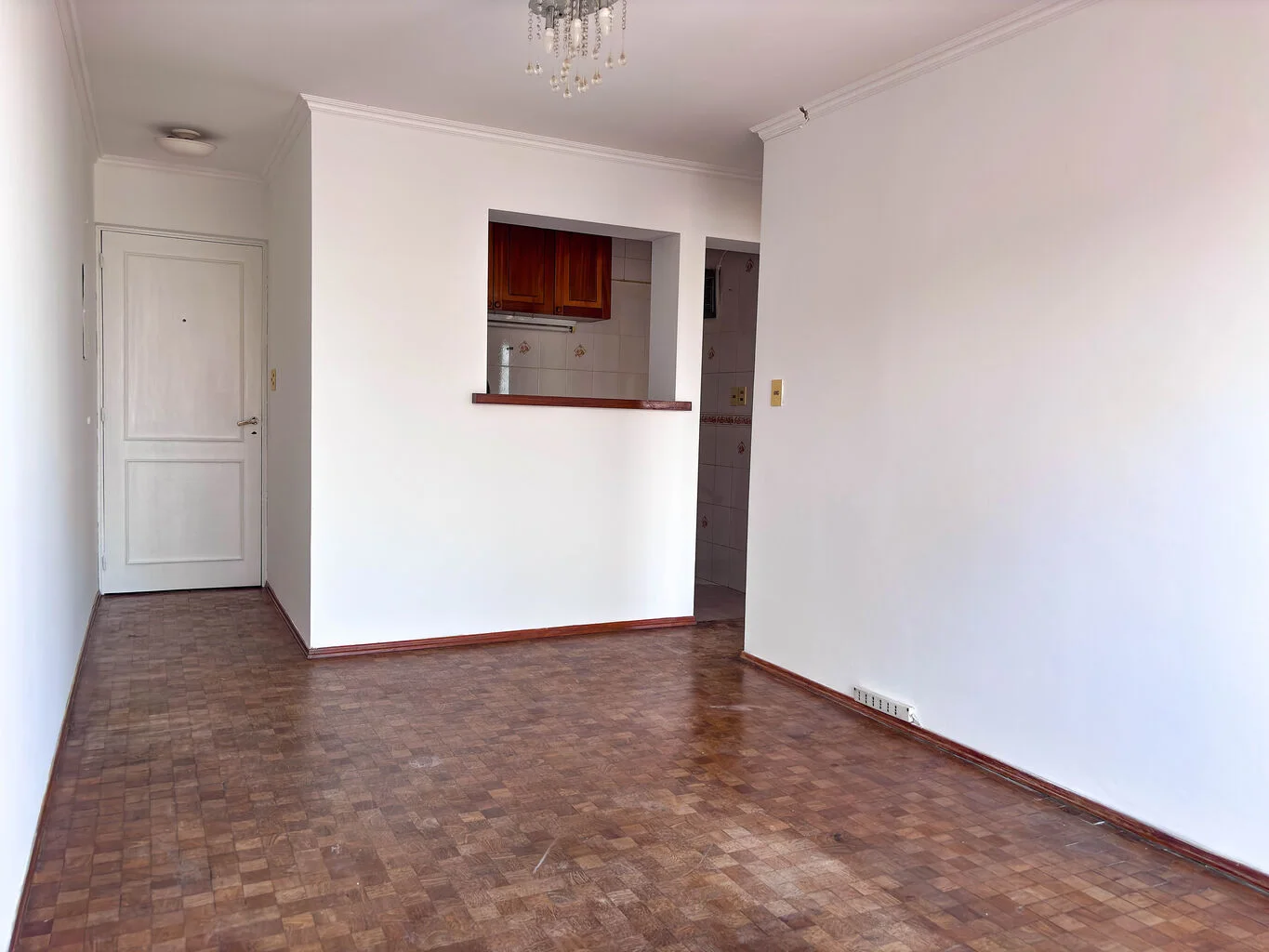 La unidad cuenta con living comedor, cocina definida con pasaplato, un dormitorio con placar y un baño completo. Los pisos son de parque. Tanto el dormitorio como el living tienen salida por ventanal a la terraza. El dormitorio no es muy amplio, entra una cama doble común, más grande no.