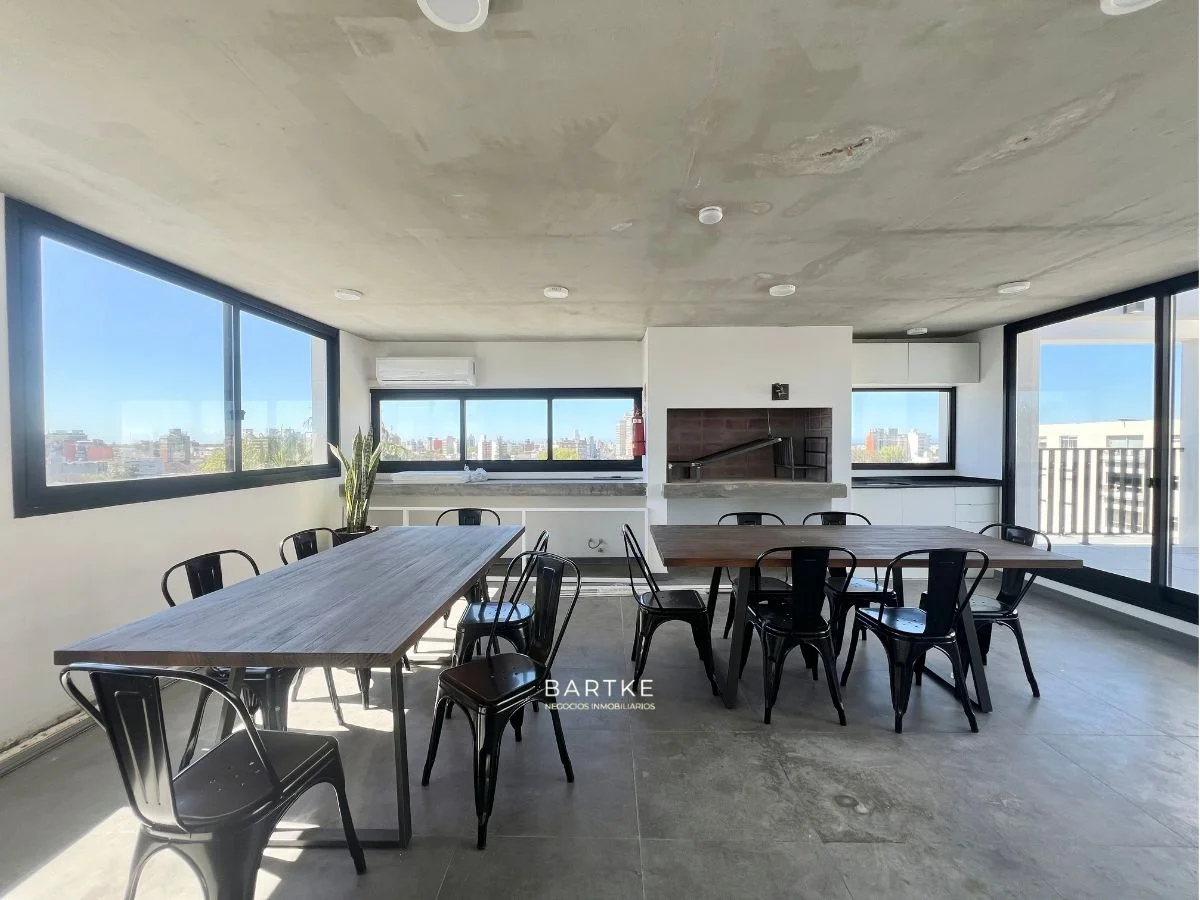 El edificio dispone de gimnasio completo con salida a terraza exterior, sector de cowork con sala de reunión o estudio, salón de usos múltiples con parrillero interior, solárium y terraza de uso libre con vistas panorámicas.
