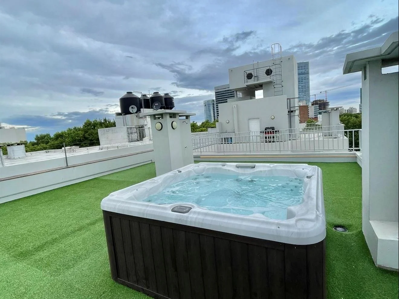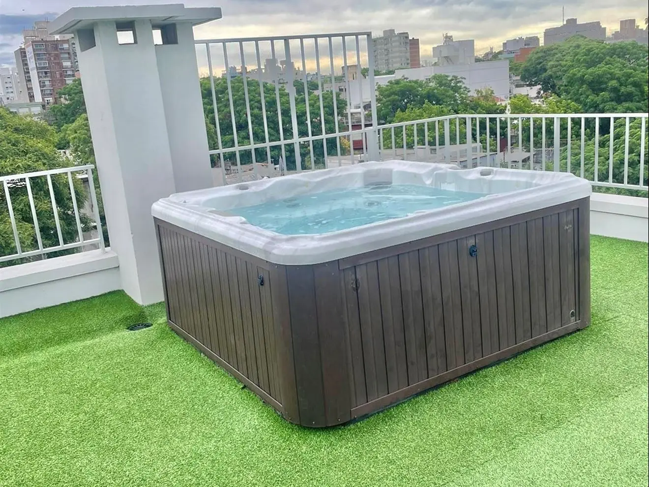 Azotea de uso común súper disfrutable con parrillero portátil y jacuzzi.