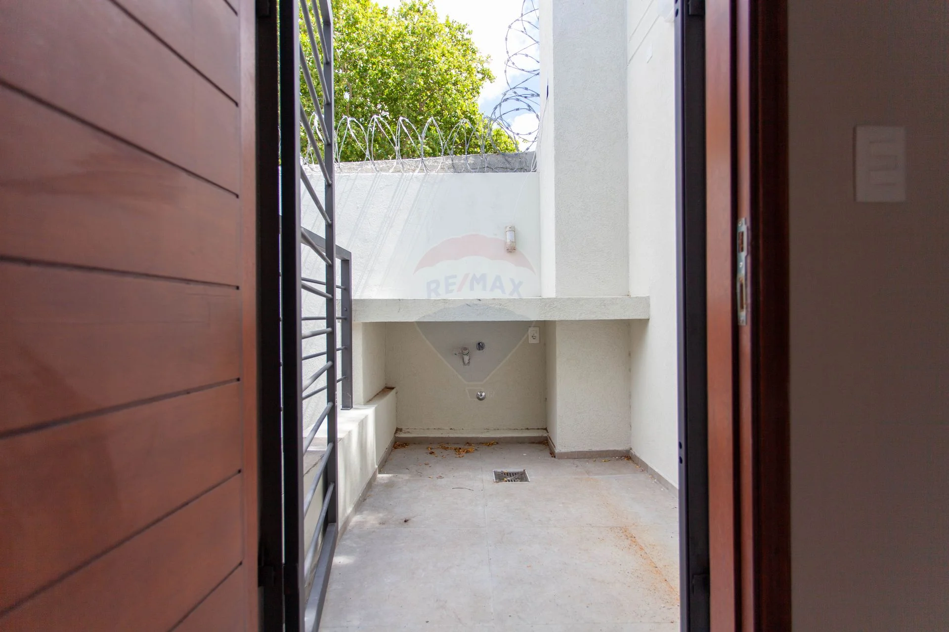 Se emplaza en un proyecto de 8 apartamentos tipo dúplex. De construcción tradicional, con revestimiento en yeso, aberturas de aluminio con vidrios de 5mm, los dormitorio cuentan con cortina de enrollar y revestimiento de piso vinílico flotante. Living comedor con cocina integrada con revestimiento de pisos en porcelanato, ventana con rejas, cocina con mesada de granito, muebles bajo mesada, pileta de acero inoxidable, grifería monocomando; previsión para termotanque en baño y lavarropas en terraza, así previsión para instalación de aires acondicionados en dormitorios.