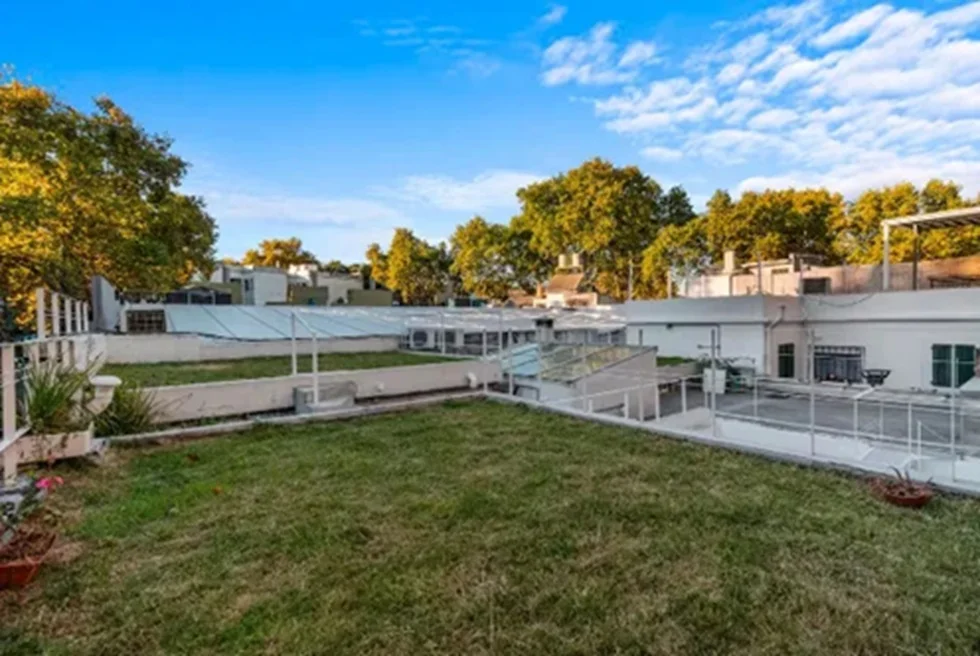 Con 130 m2 de Terraza común con pasto natural con parrillero, horno de pan