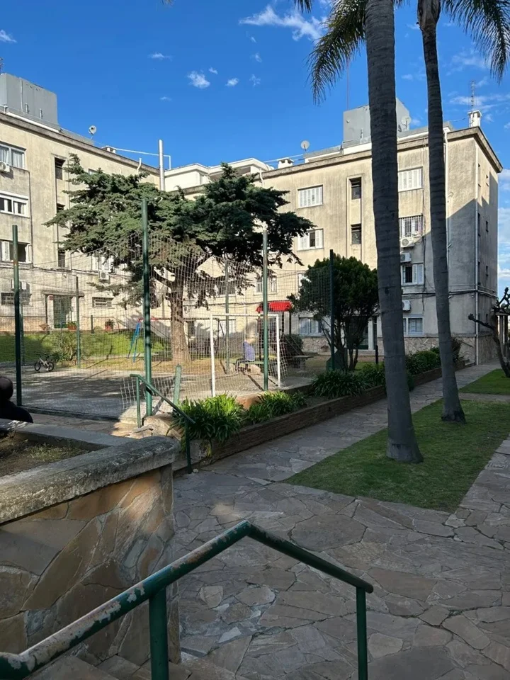 Complejo cerrado con área verde y juegos infantiles