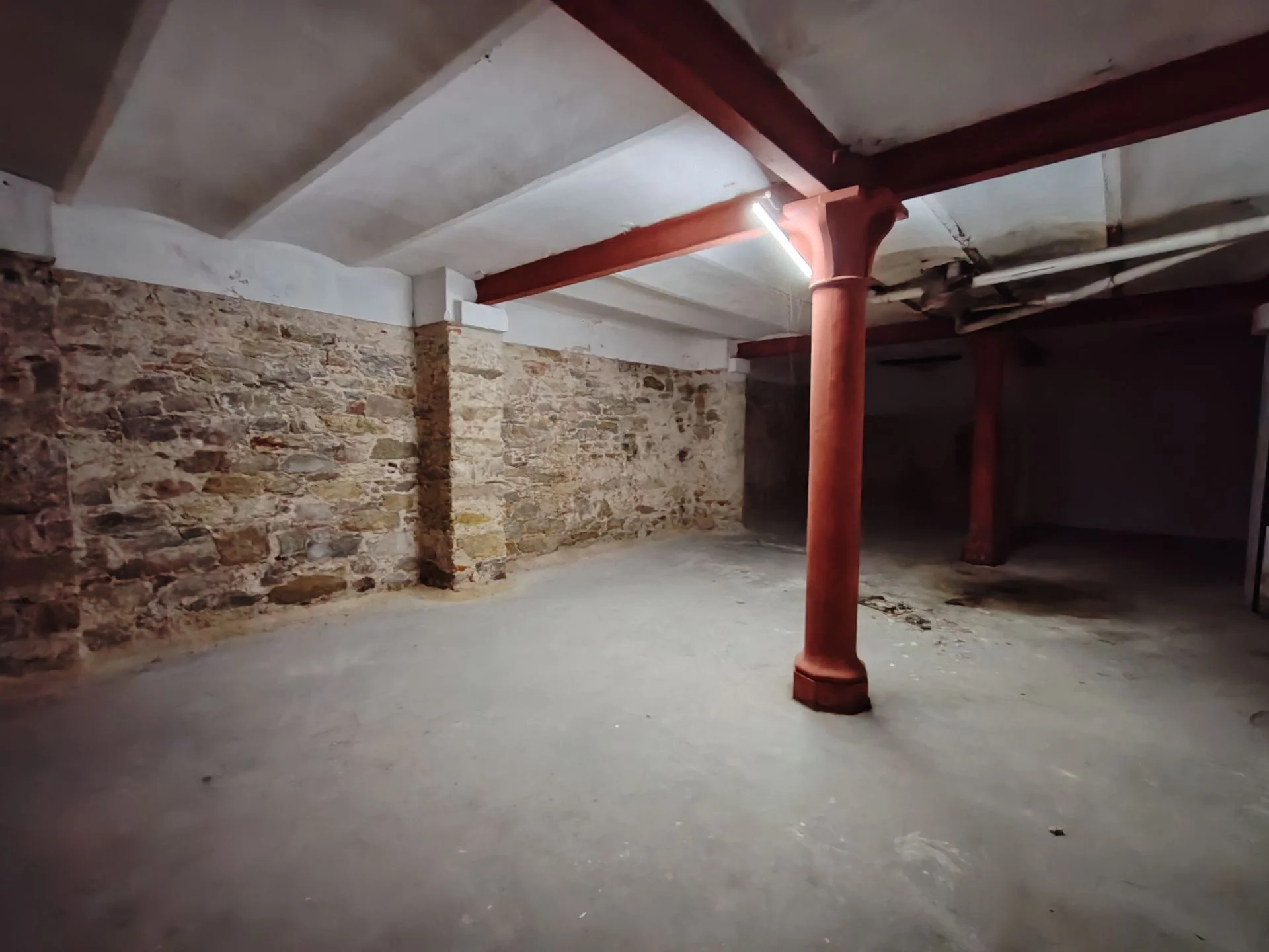 Subsuelo ideal como gran depósito o salón exposición con sus paredes de piedra original de la época y buena escalera de acceso.
