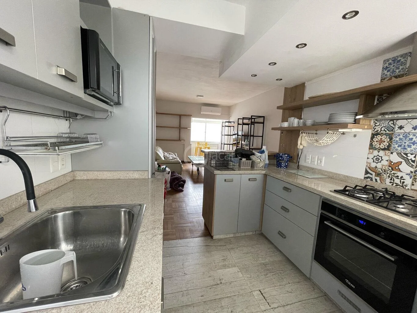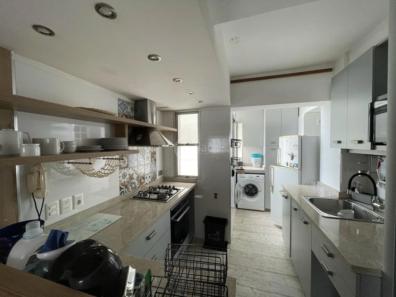 - Cocina semi integrada, muy moderna, con desayunador, anafe a gas, horno eléctrico, microondas, heladera, vajillas, etc.