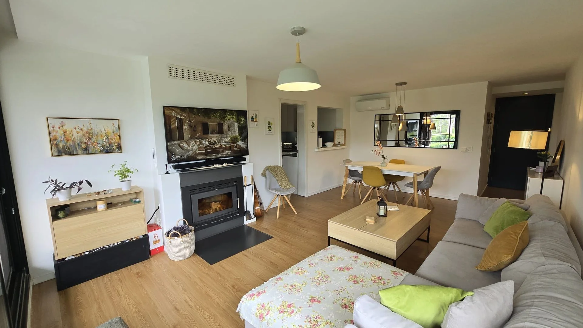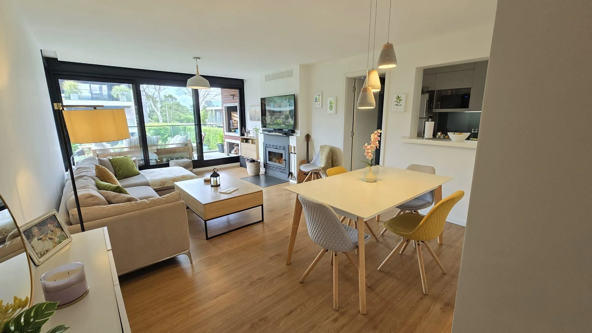 Amplio living comedor con estufa de alto rendimiento y grandes ventanales con doble vidrio, que brindan excelente luz natural y salida a una terraza con parrillero de uso exclusivo.