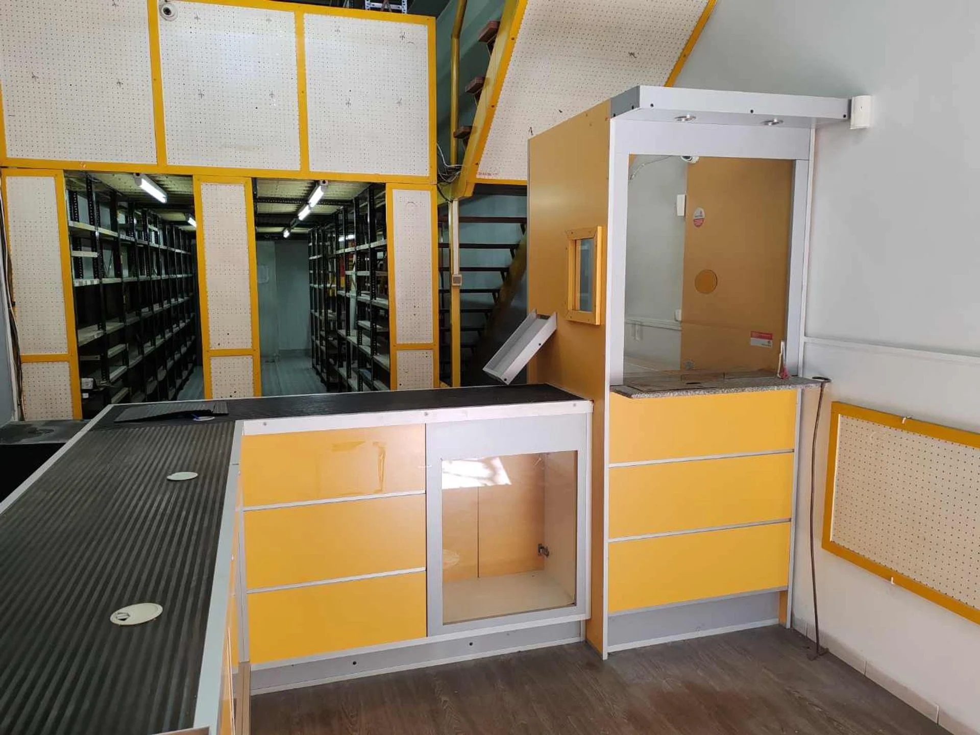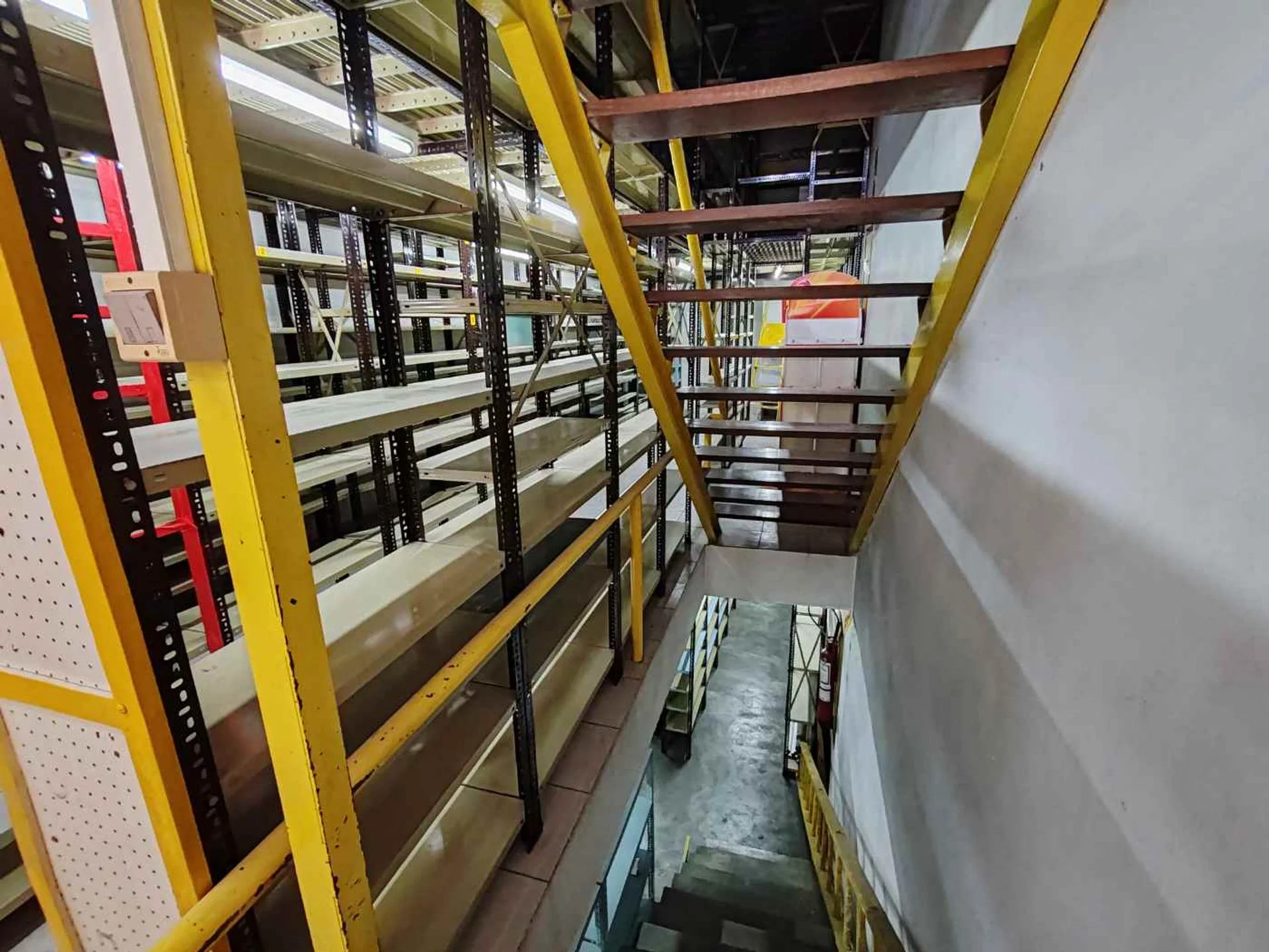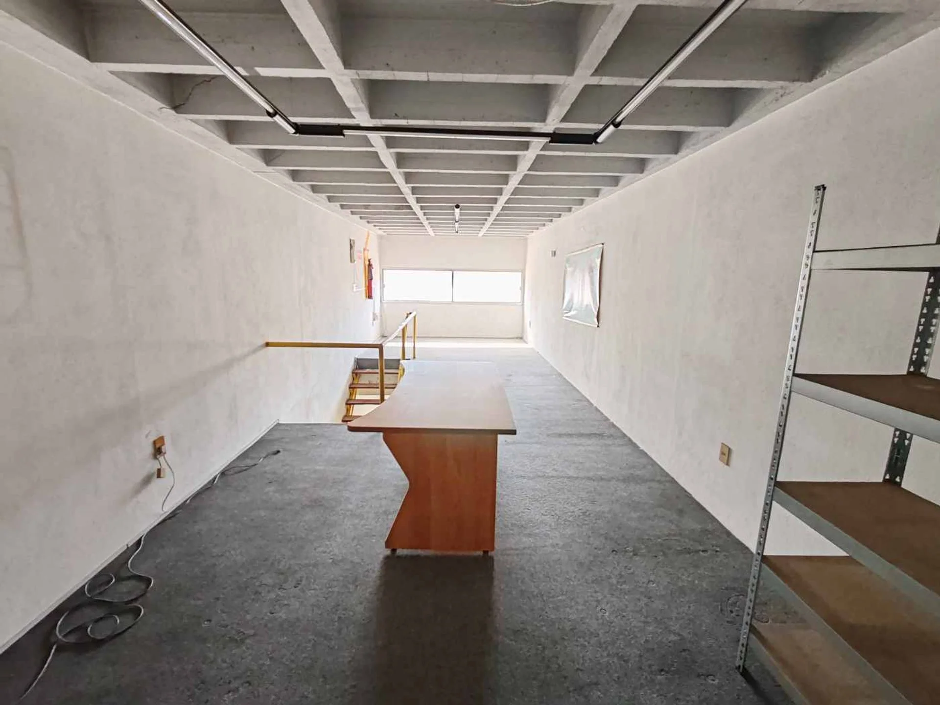 Entrepiso: de 38 mts2 con estanterías de metal y pequeña cocina.