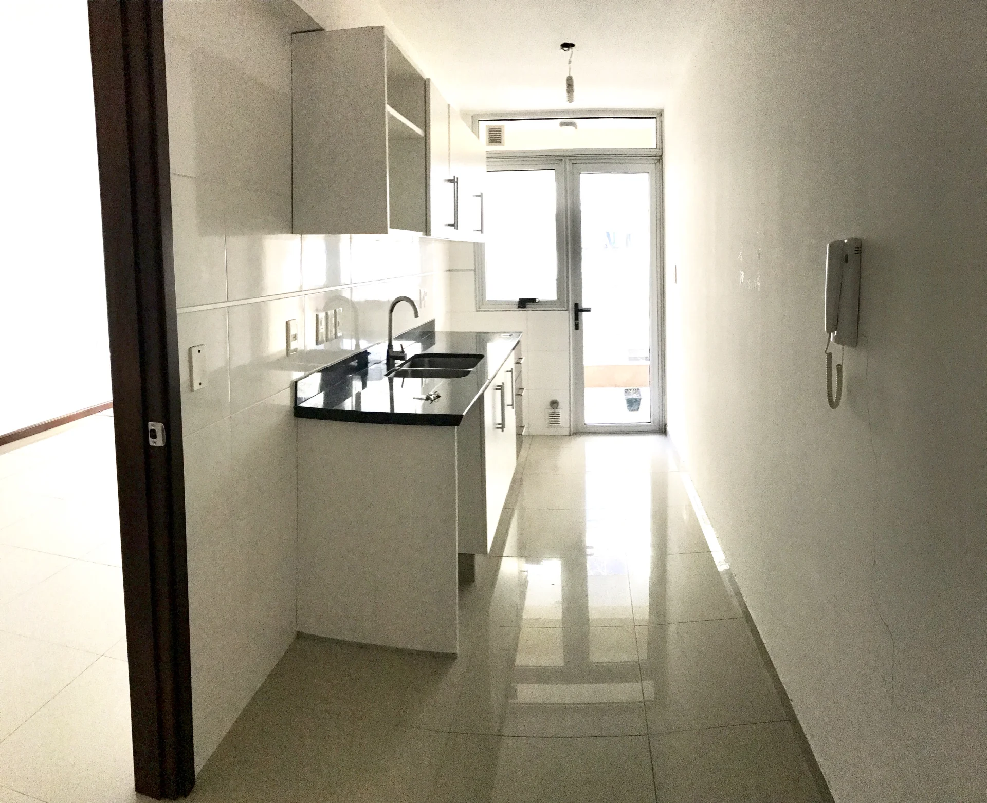 Cocina con con estar diario y terraza
