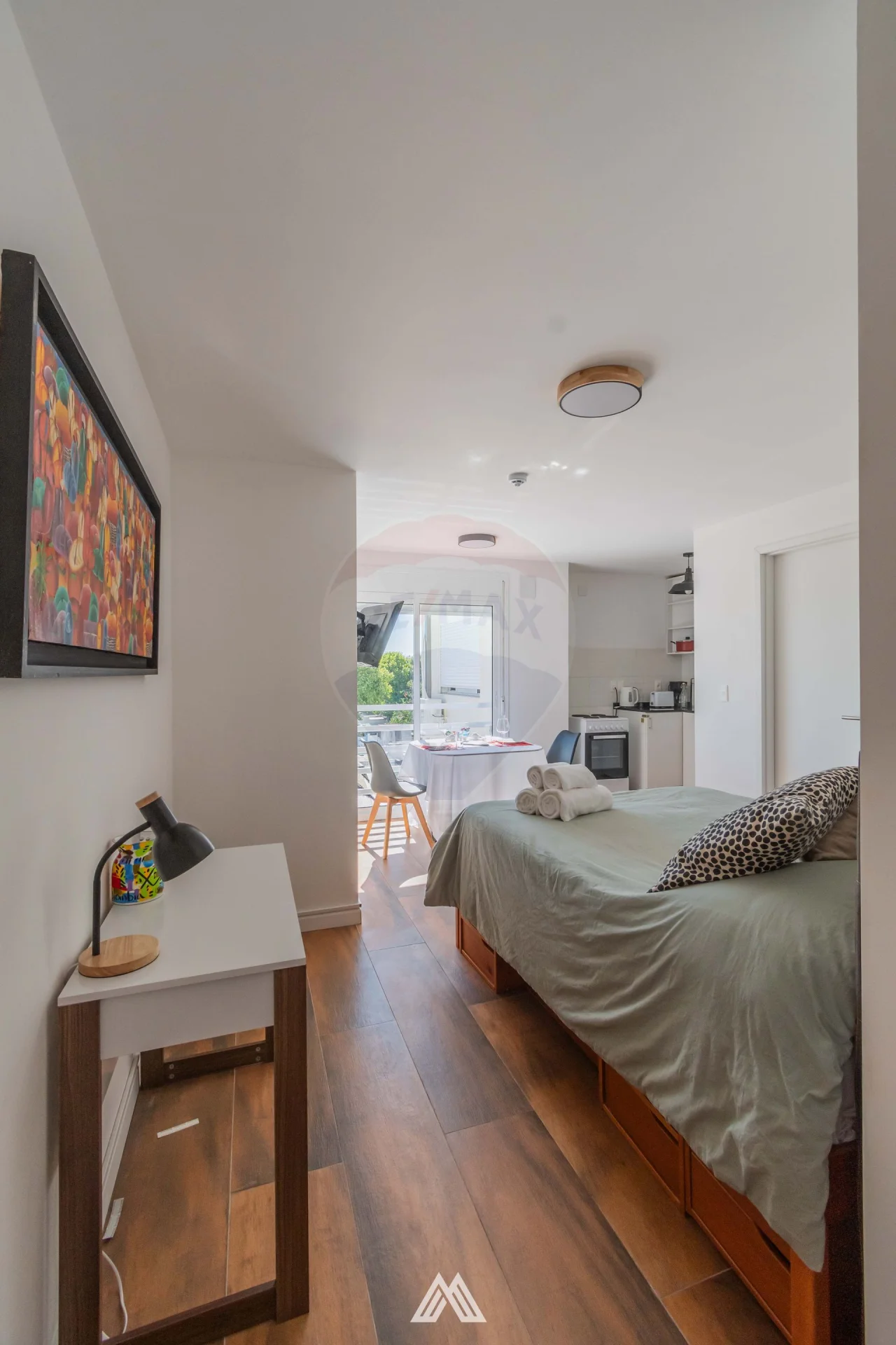 La cocina esta integrada al ambiente cuenta con heladera, cocina, microondas jarra eléctrica y cafetera. El baño es de buenas dimensiones y se encuentra completo.