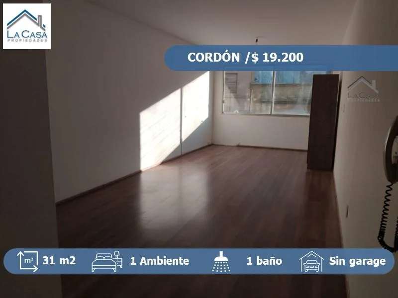 Alquiler Apartamento Monoambiente en Cordón a media cuadra de Av. 18 de Julio, en las cercanías de servicios, medios de transporte, centro educativos. Excelente oportunidad para estudiantes, oficina o escritorio.