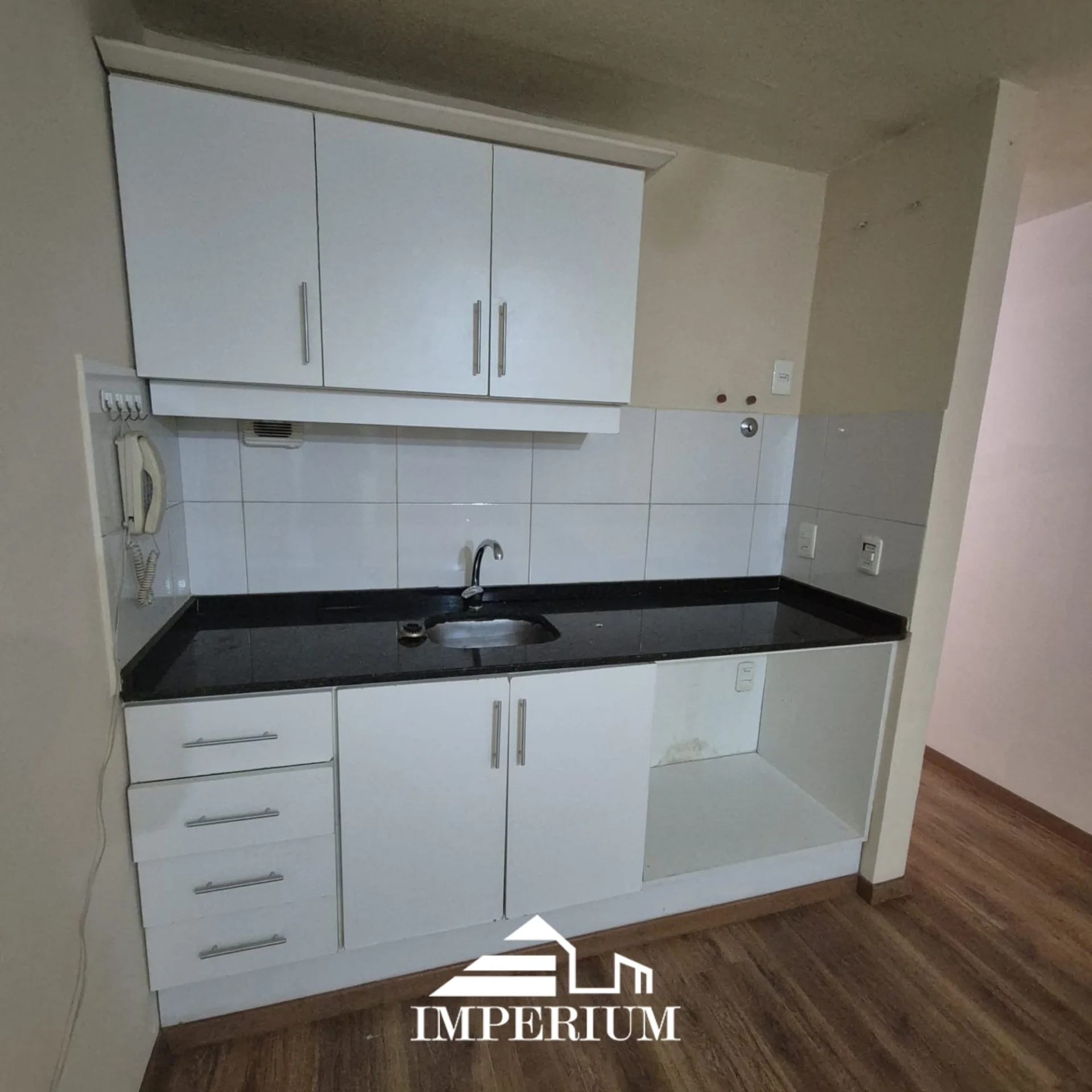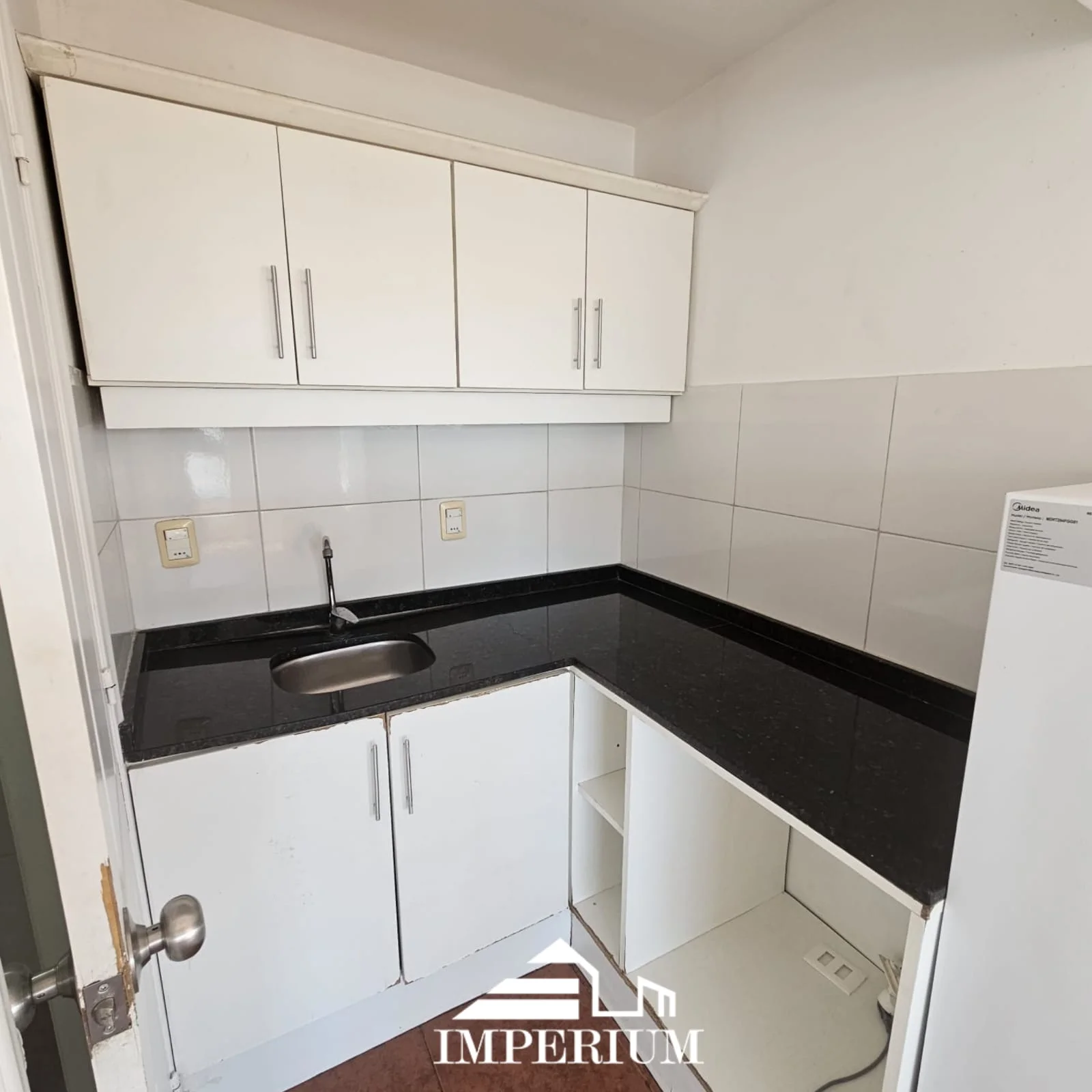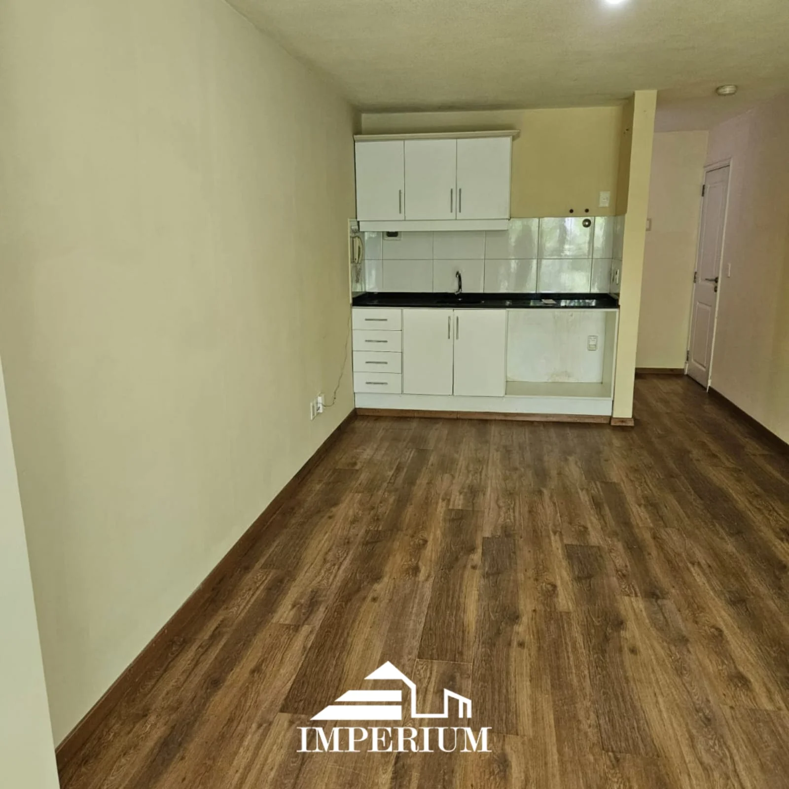 El apartamento cuenta con una kitchenette equipada con muebles aéreos y bajo mesada, baño completo y un espacio ideal para escritorio o área de trabajo, aprovechando al máximo cada metro del ambiente.