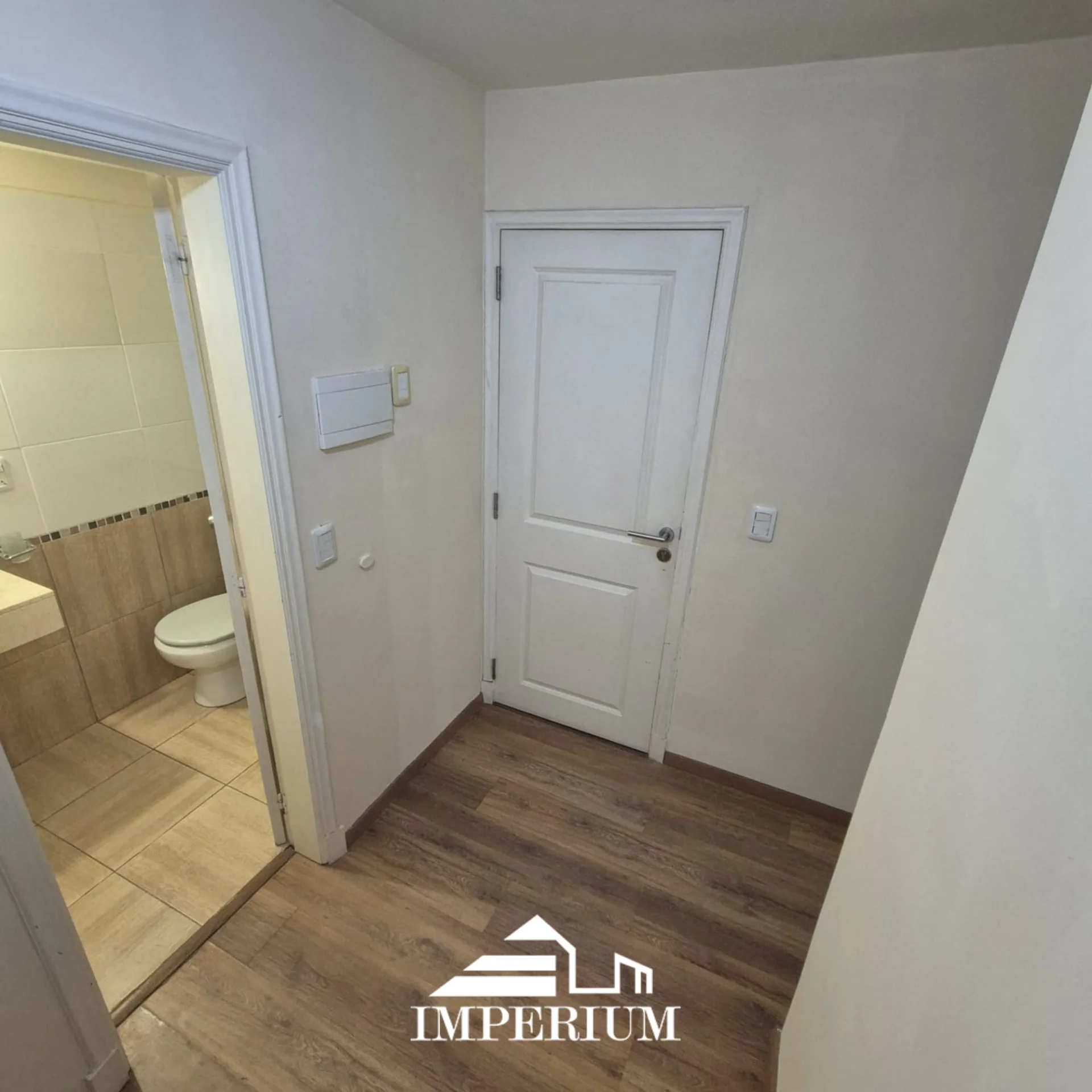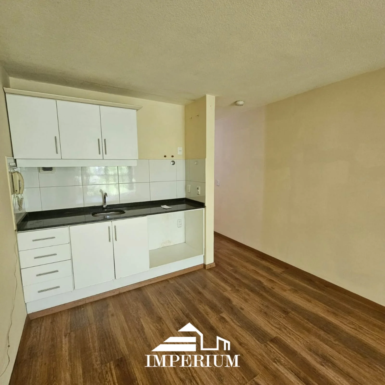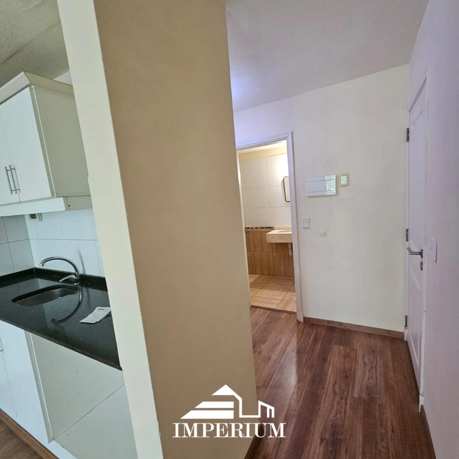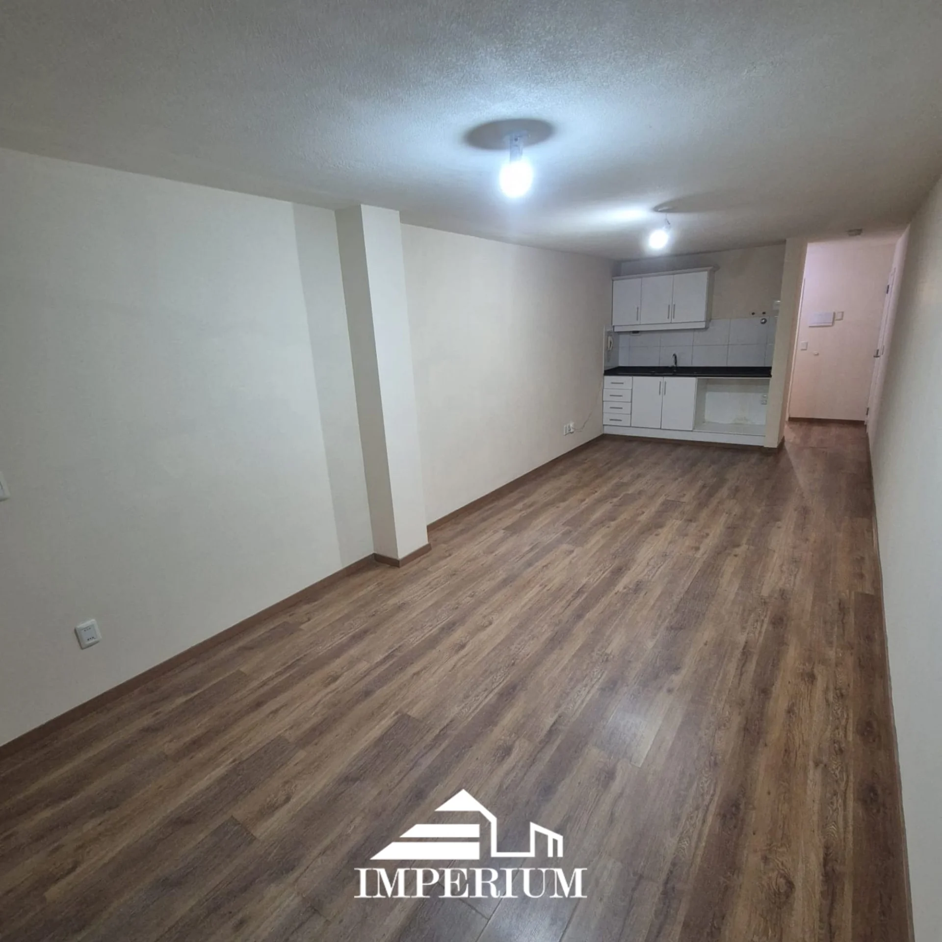 El apartamento cuenta con una kitchenette equipada con muebles aéreos y bajo mesada, baño completo y un espacio ideal para escritorio o área de trabajo, aprovechando al máximo cada metro del ambiente.