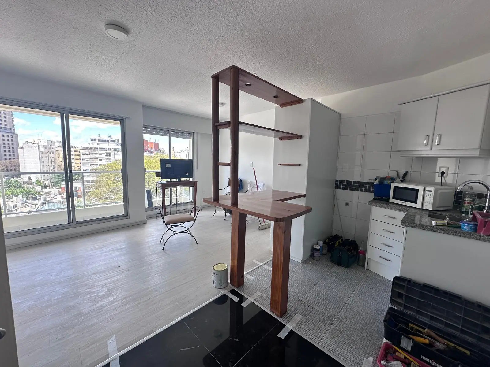 El apartamento está ubicado en un piso 8, hacia el contrafrente muy despejado y soleado. Cuenta con balcón, baño (hecho a nuevo) y cocina integrada.
