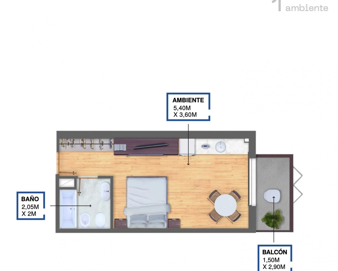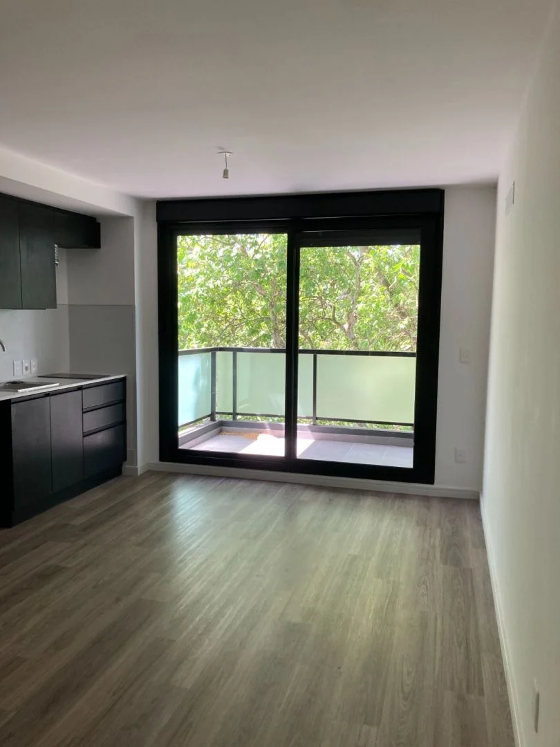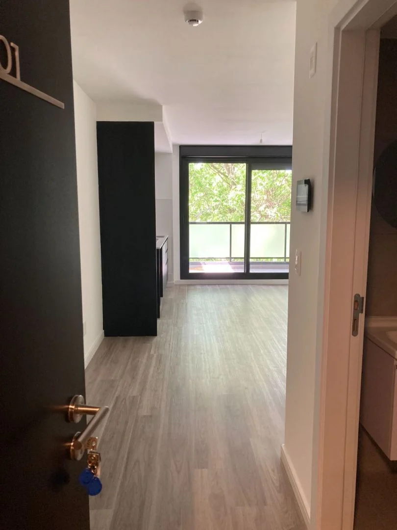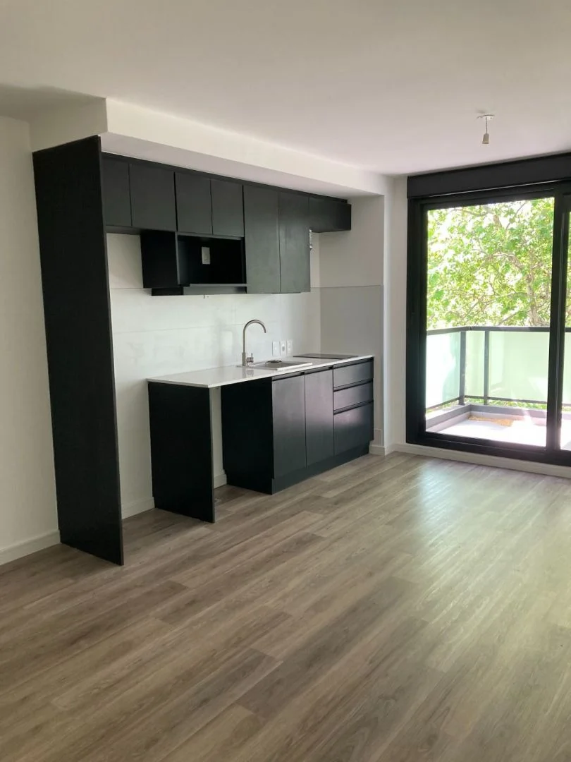 Monoambiente amplio de 30,7m² y 4,7 m² de terraza distribuido de la siguiente manera: Hall de entrada con nicho para calefón y guardado, ambiente amplio con cocina integrada, bajo mesada con anafe, campana y aéreo, baño completo. Cuenta con vista al frente, y orientación sureste, beneficiando de buena ventilación y luz solar directa sobre horas de la mañana.