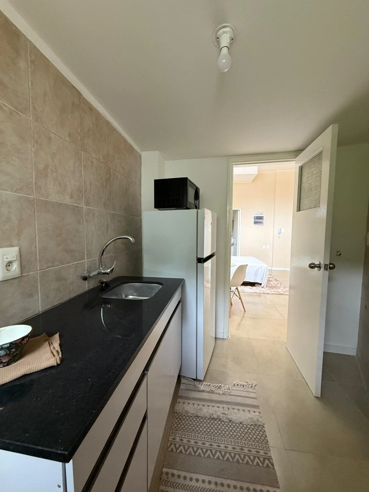El ambiente cuenta con cocina definida y aire acondicionado. El baño es completo. La propiedad se desarrolla en primer piso por escalera.