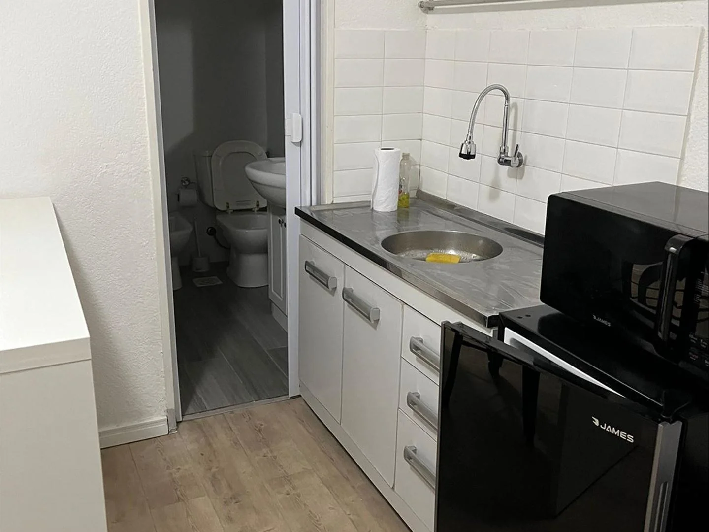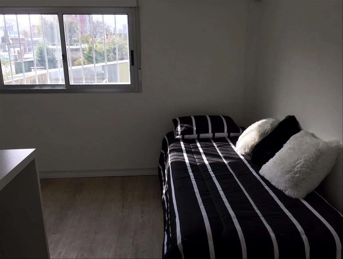 Muy buen punto frente al Shopping de Tres Cruces y terminal de ómnibus.Muy luminoso y soleado contrafrente, mirando al este ,con aire acondicionado,kitchenette y baño.Portería con horario.Gastos comunes bajos $ 2.926.- (CW200645)
