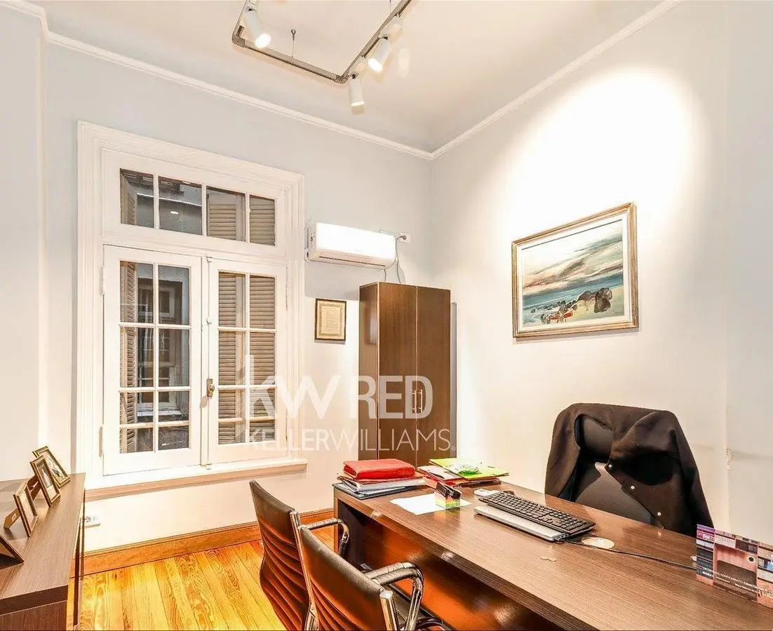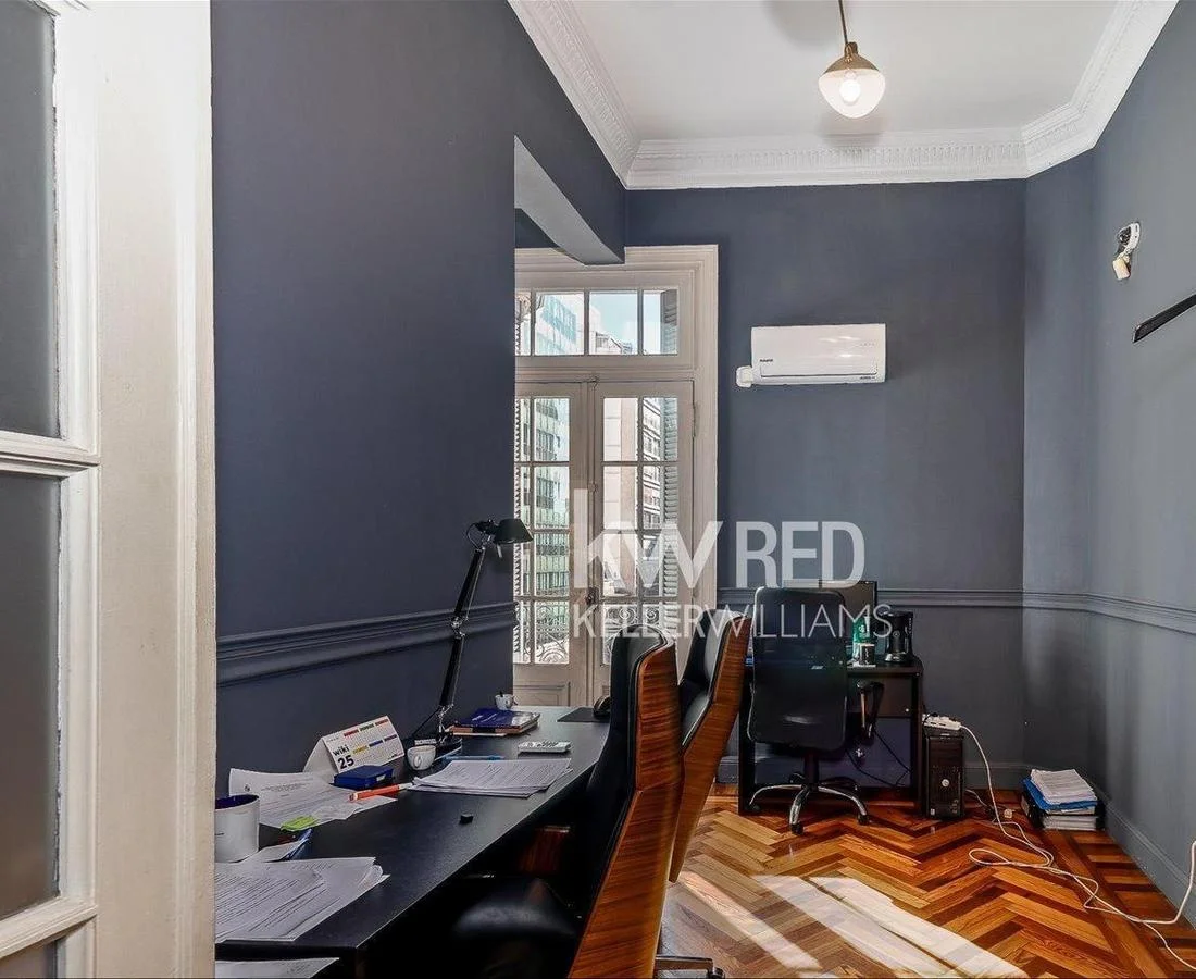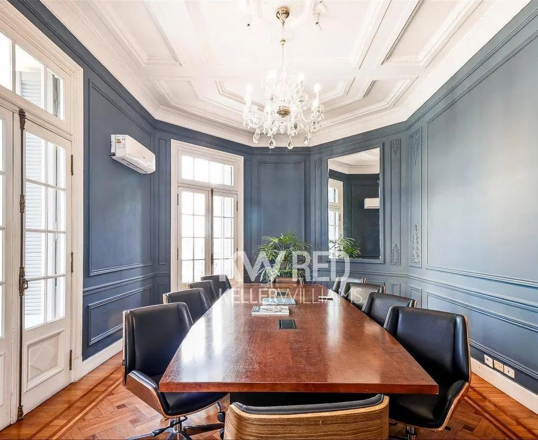 Hoy, este espacio ha sido íntegramente reciclado y modernizado, conservando la nobleza de sus materiales originales: pisos de pinotea con zócalos de mármol, aberturas de época, vitraux y detalles ornamentales que evocan la elegancia de otros tiempos. A ello se suma una infraestructura tecnológica de última generación, con cableado estructurado, telefonía IP, luminaria corporativa de alta gama, climatización en todos los ambientes, y mobiliario funcional apto para oficinas dinámicas.