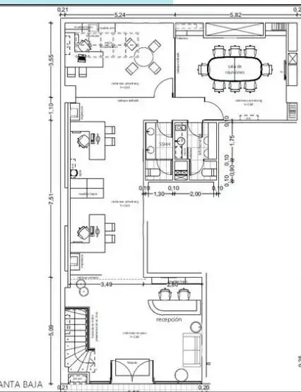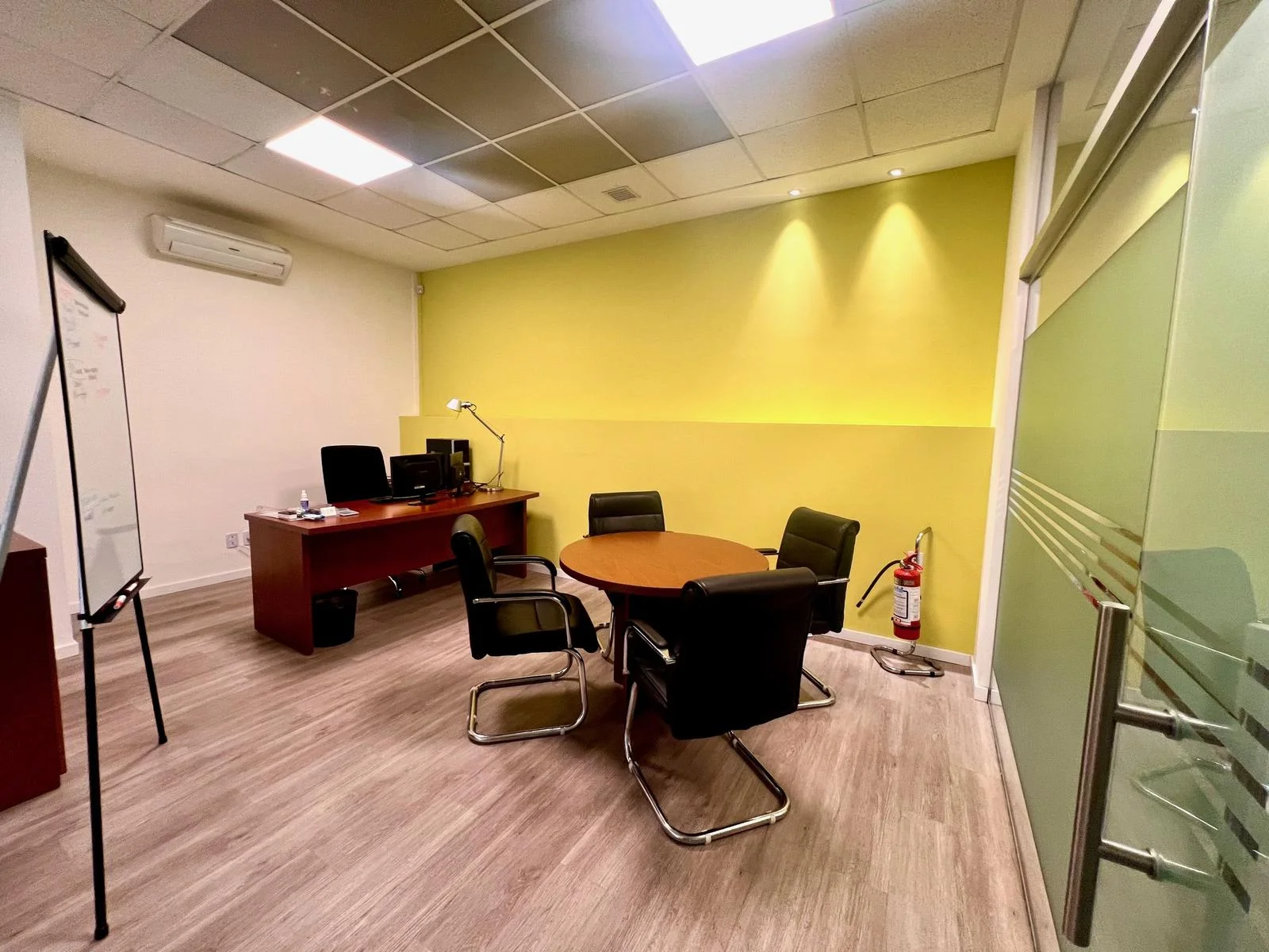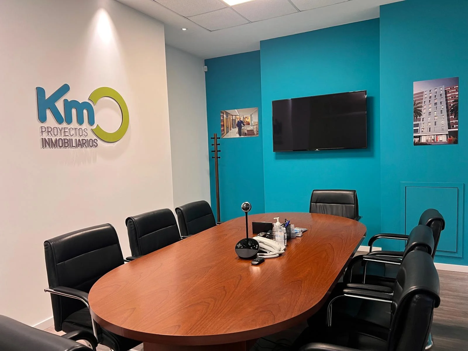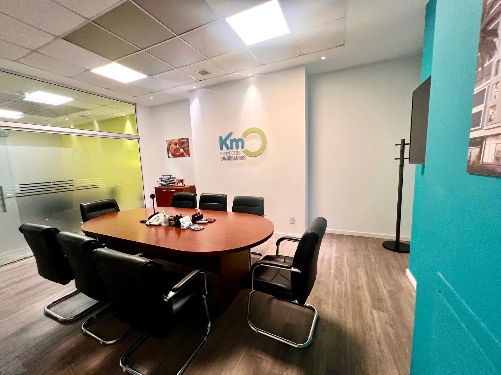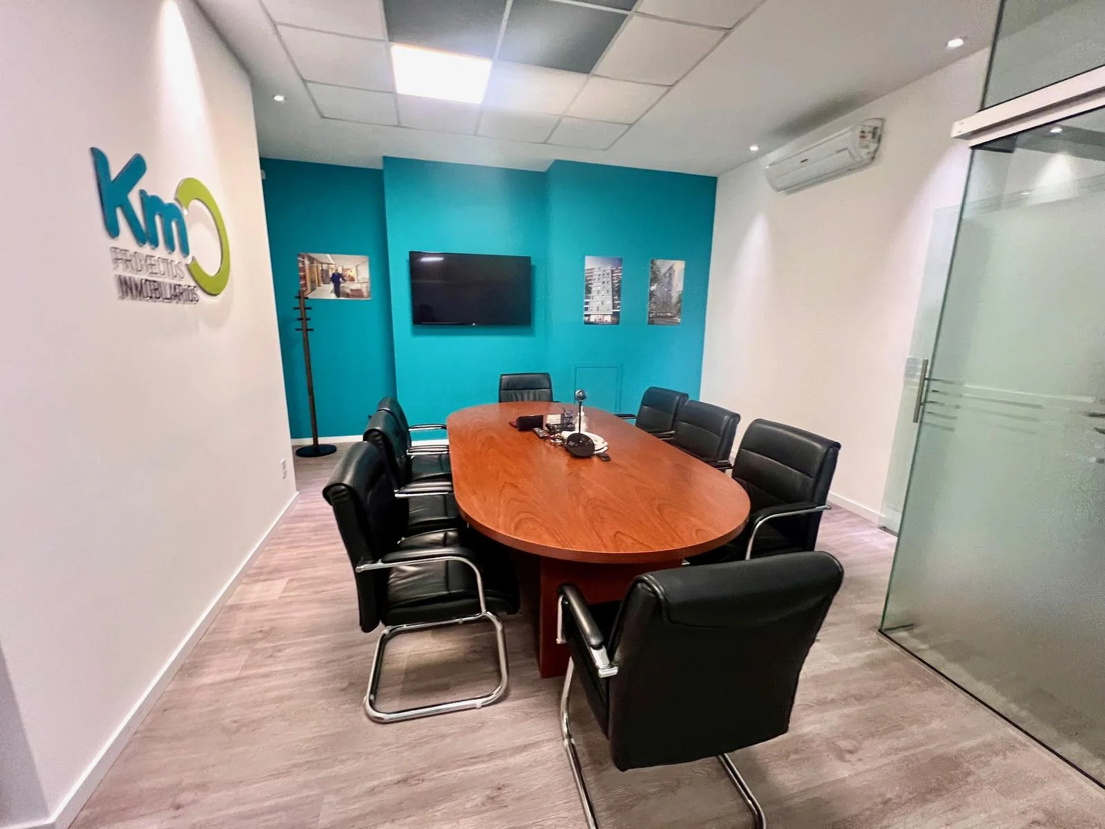 Oficina privada con sala de reuniones completamente equipada y con aire acondicionado instalado y división con mámpara en vidrio templado.