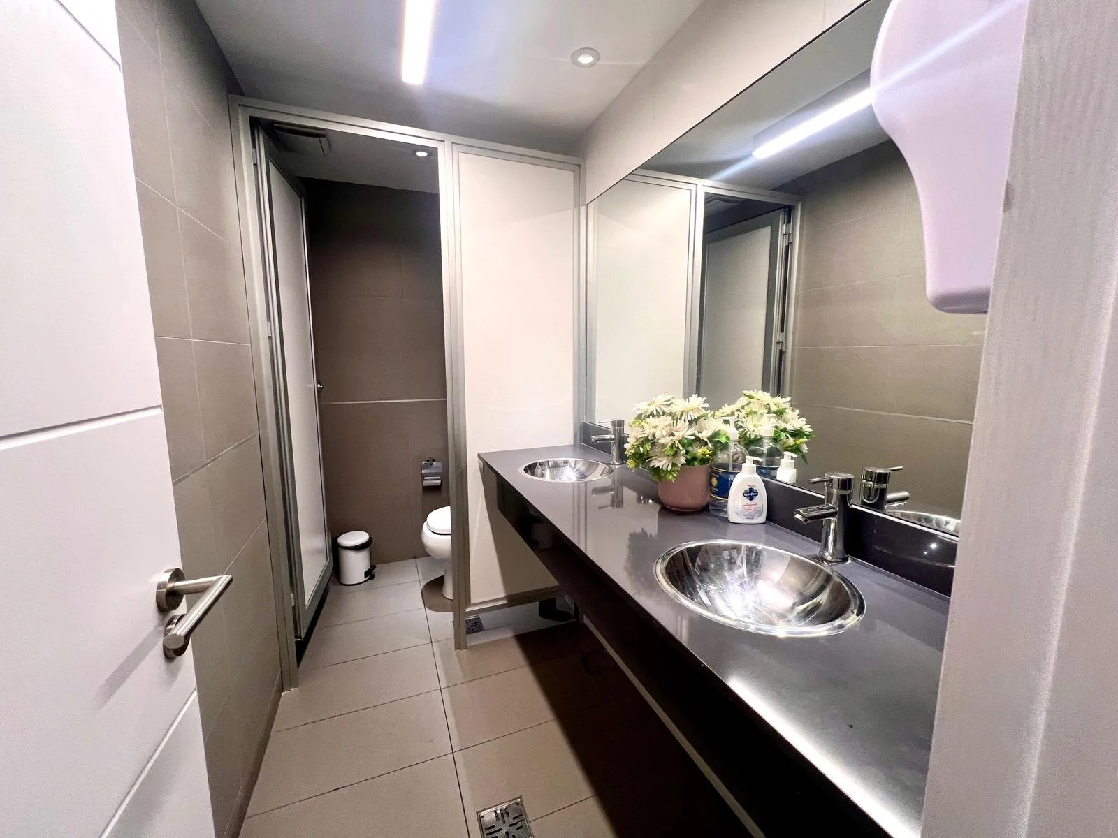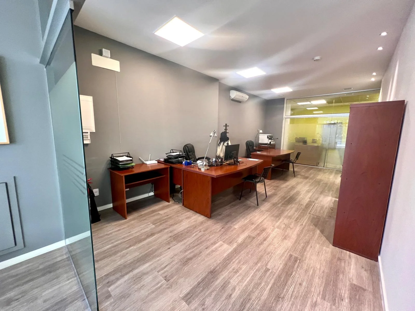 Terminaciones: pisos en PVC de alto tránsito, paredes de yeso o mampostería enduida y pintada, techos con cieloraso en yeso enduido y pintado, zócalos en MDF mas PVC, instalación eléctrica completa con llaves térmicas y temporizadores, fachada en aluminio y vidrio de 6.50 x 3.20 con elecroimán de 600 kg.