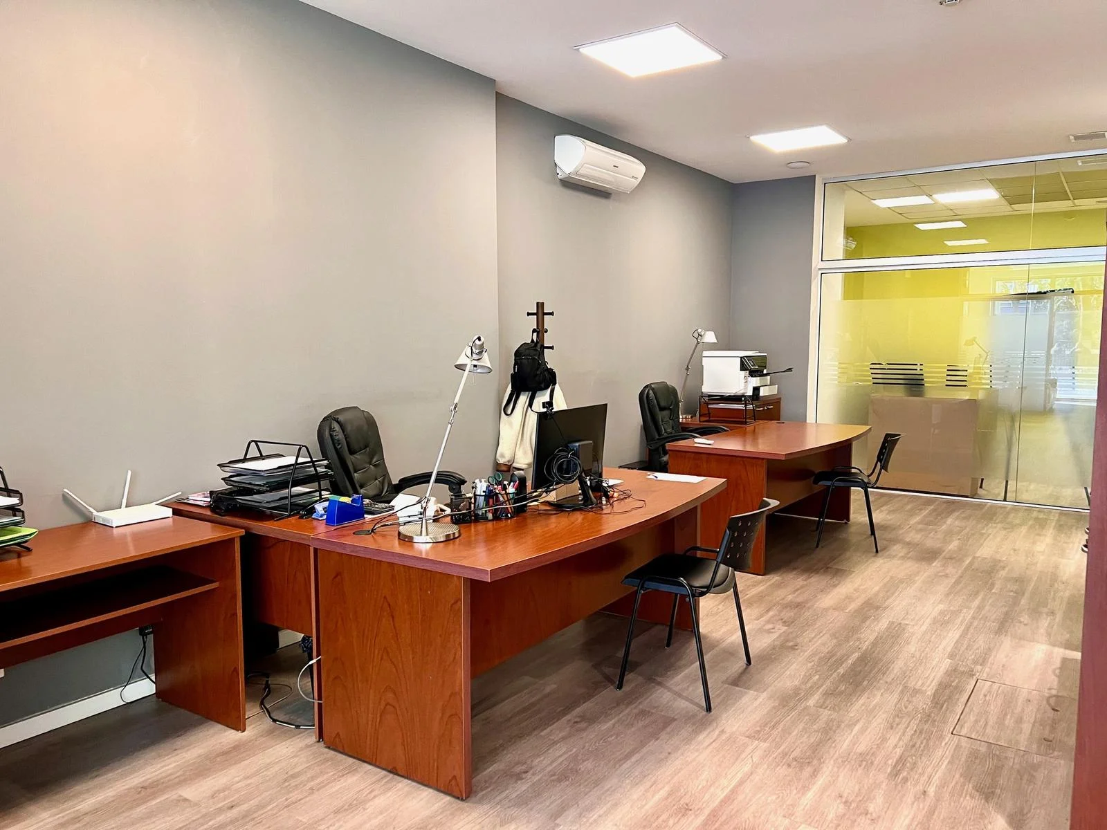 Area de trabajo con dos estaciones totalmente equipadas con aire acondicionado instalado e iluminación,