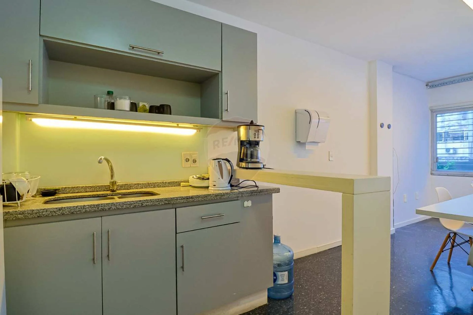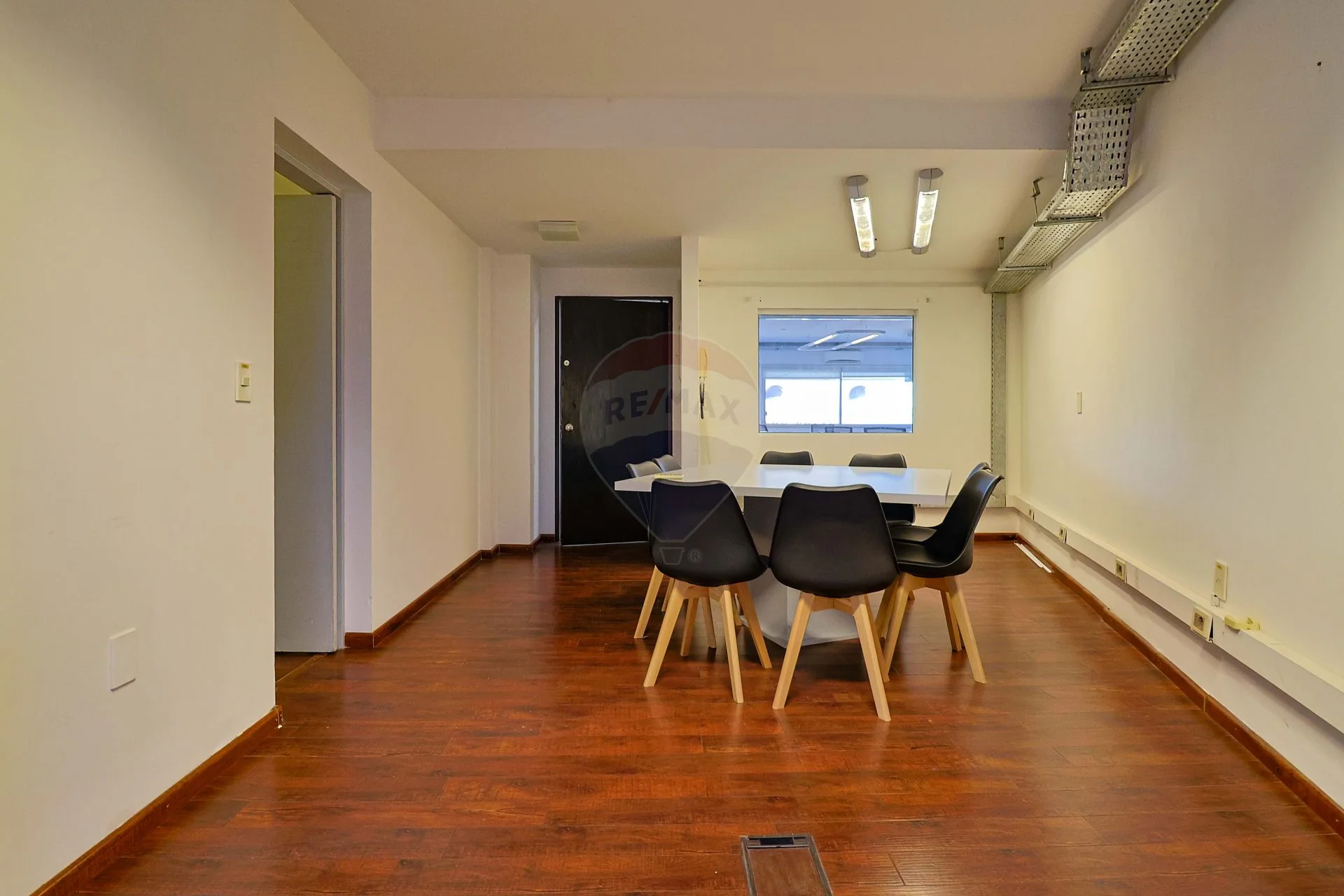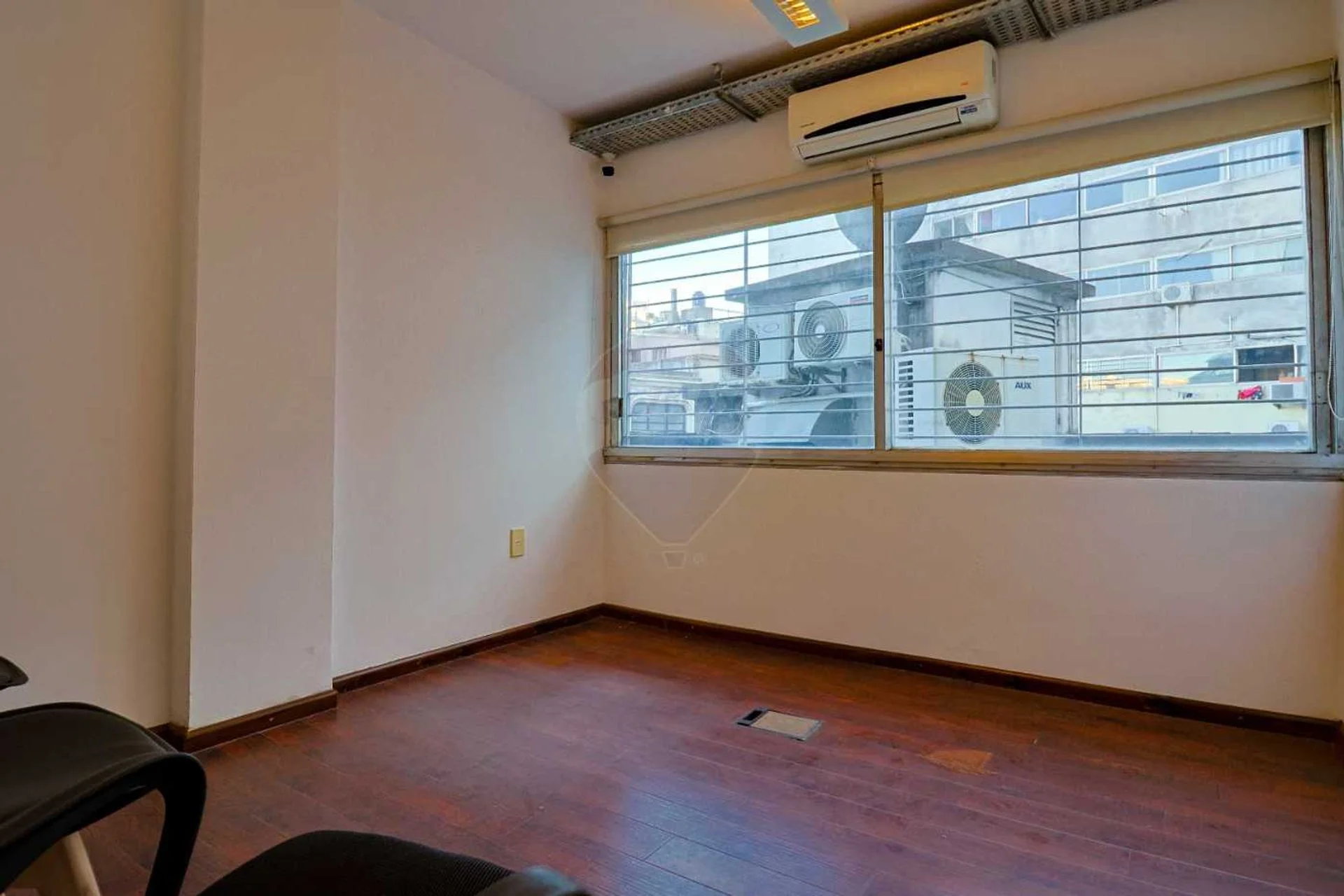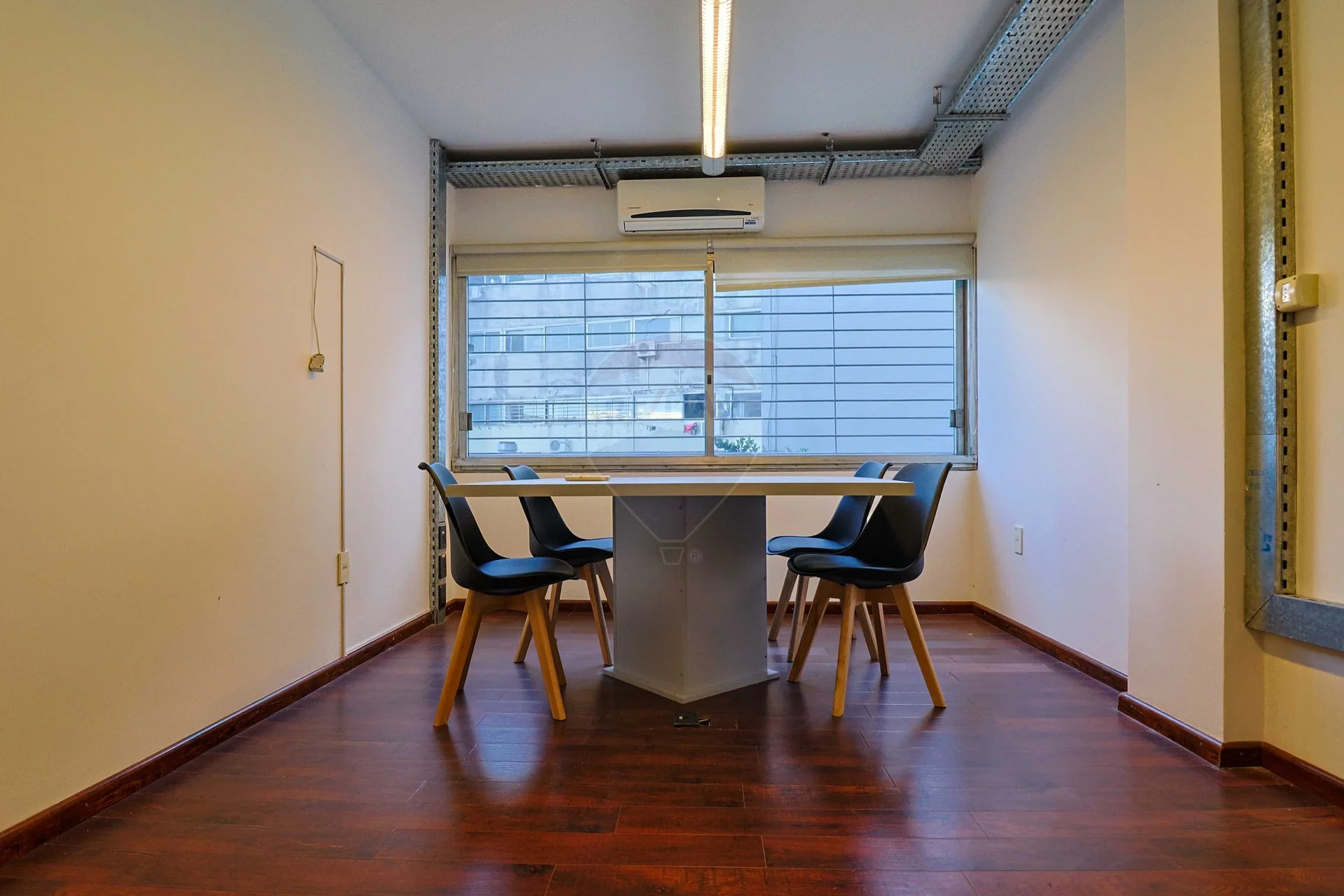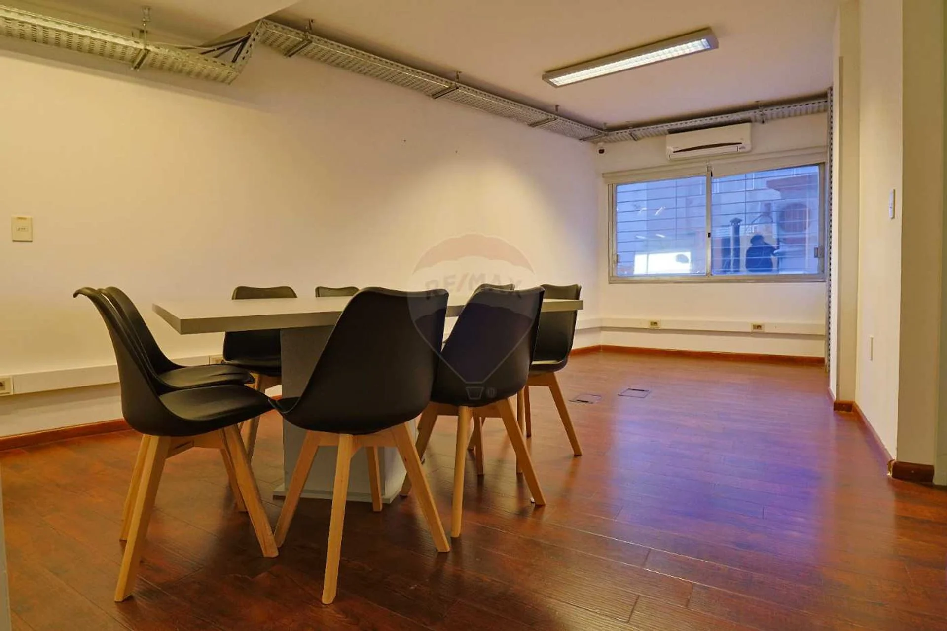 Primer oficina con Orientación Sur, vista al Teatro Solís, aire acondicionado frio/calor y cortinas, cómoda mesa de reunión con sillas.