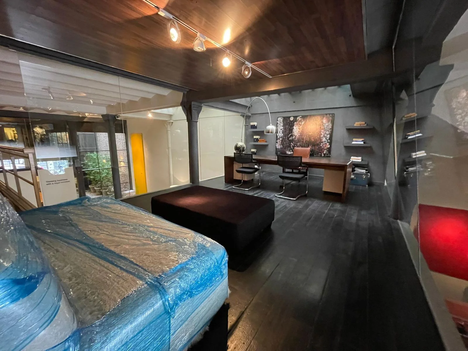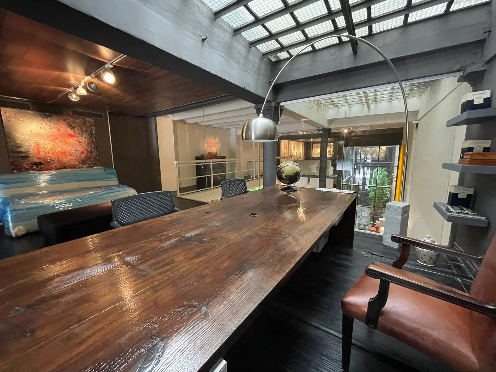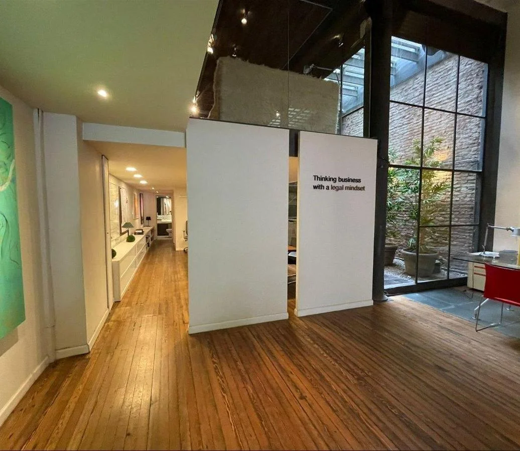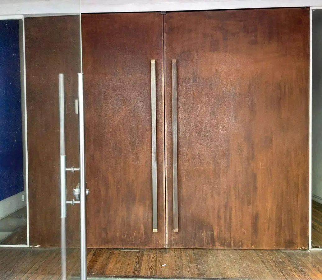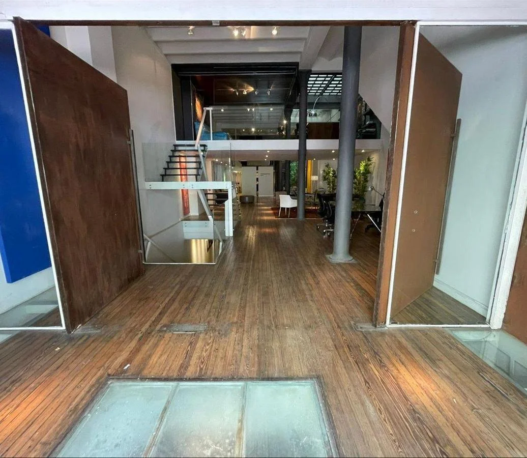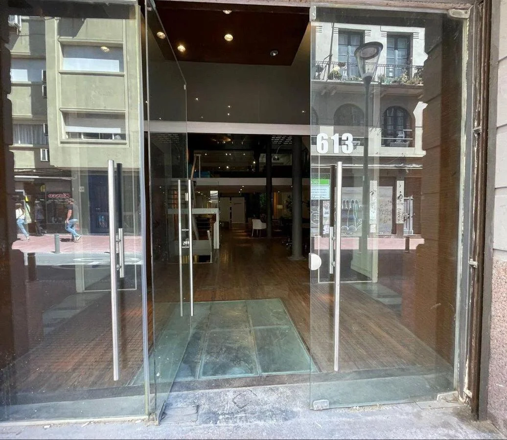 Una oficina con acceso a una de las calles mas emblemáticas de Ciudad Vieja, con puerta en cristal y una gran puerta principal en hierro añejado.
