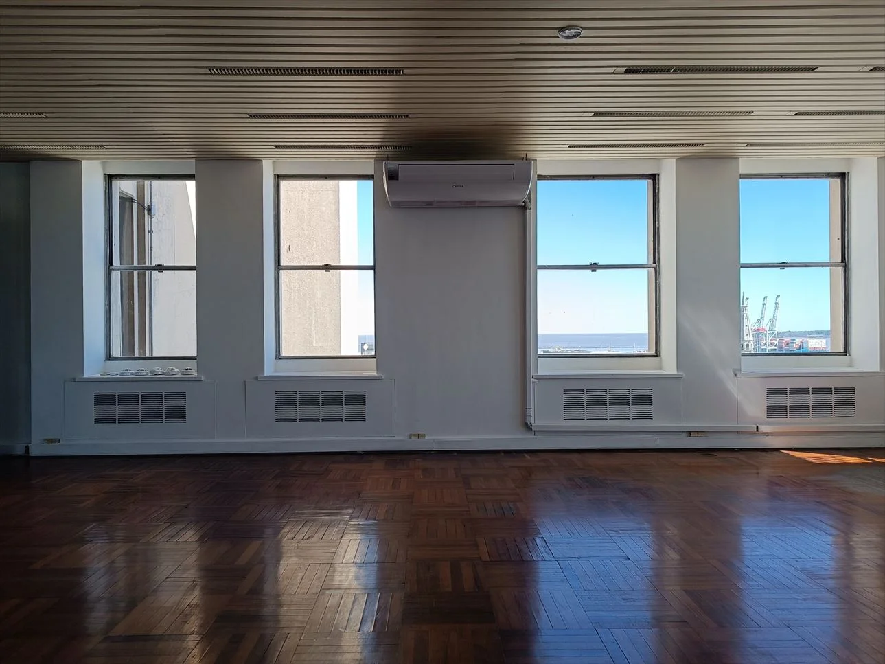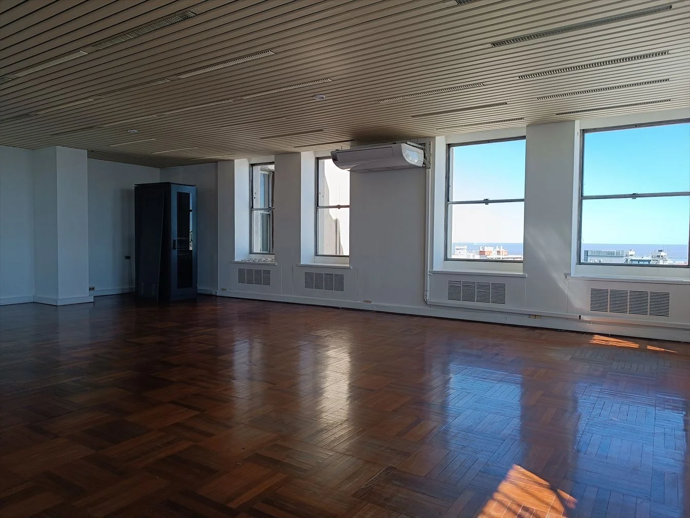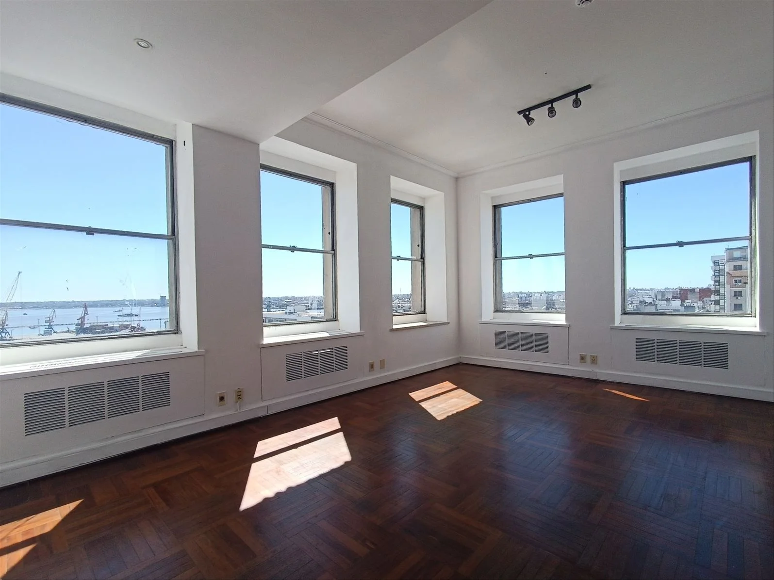 Amplia oficina con gran luminosidad en un emblemático edificio de la Ciudad Vieja, esta oficina se ubica en un piso alto, ofreciendo