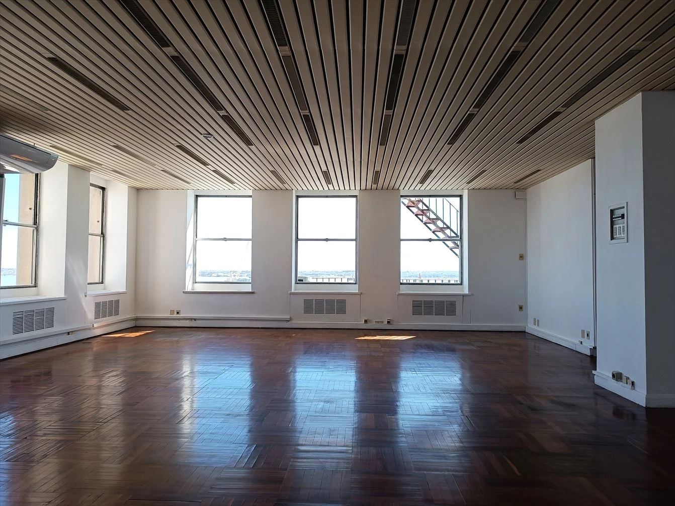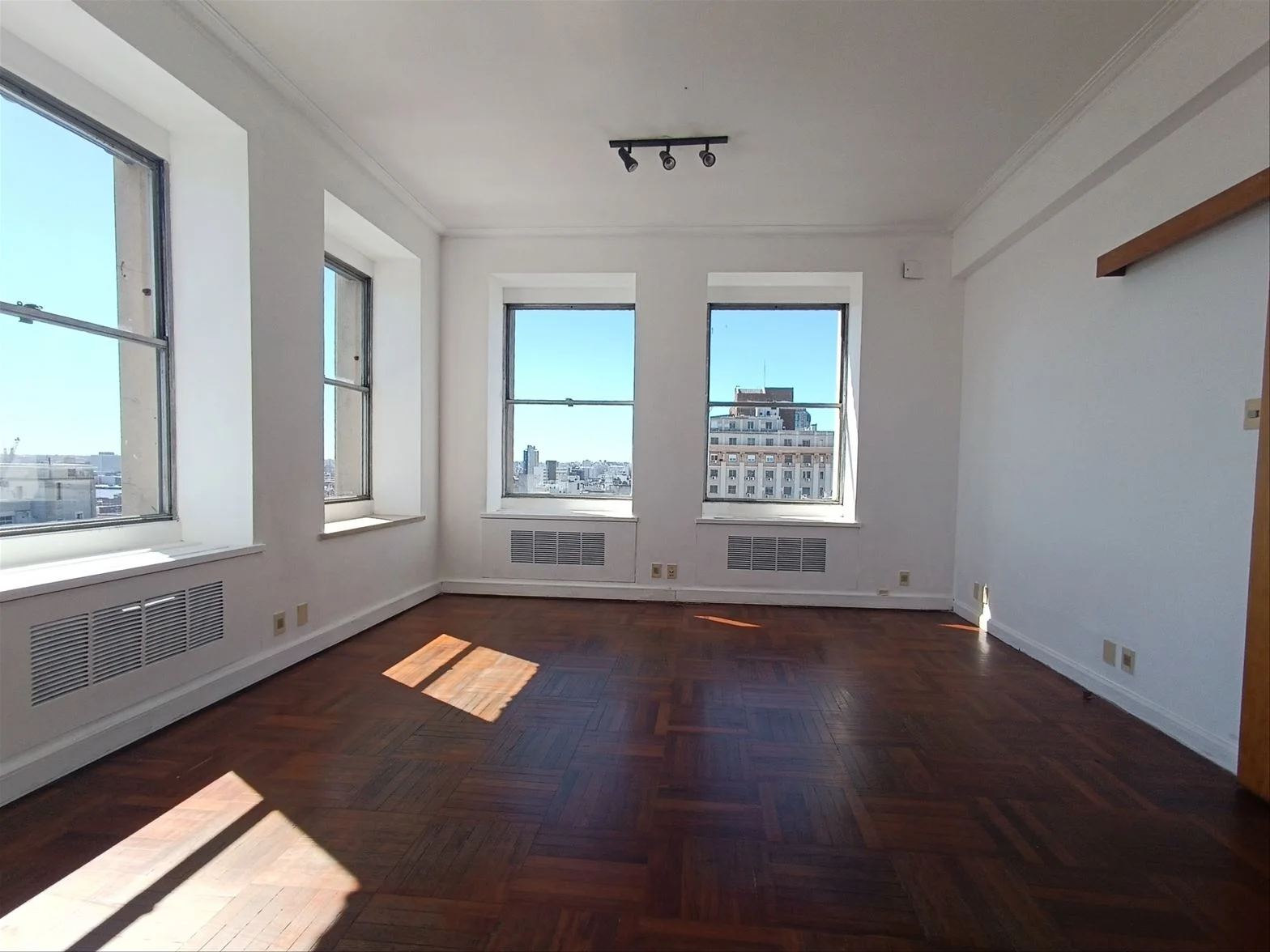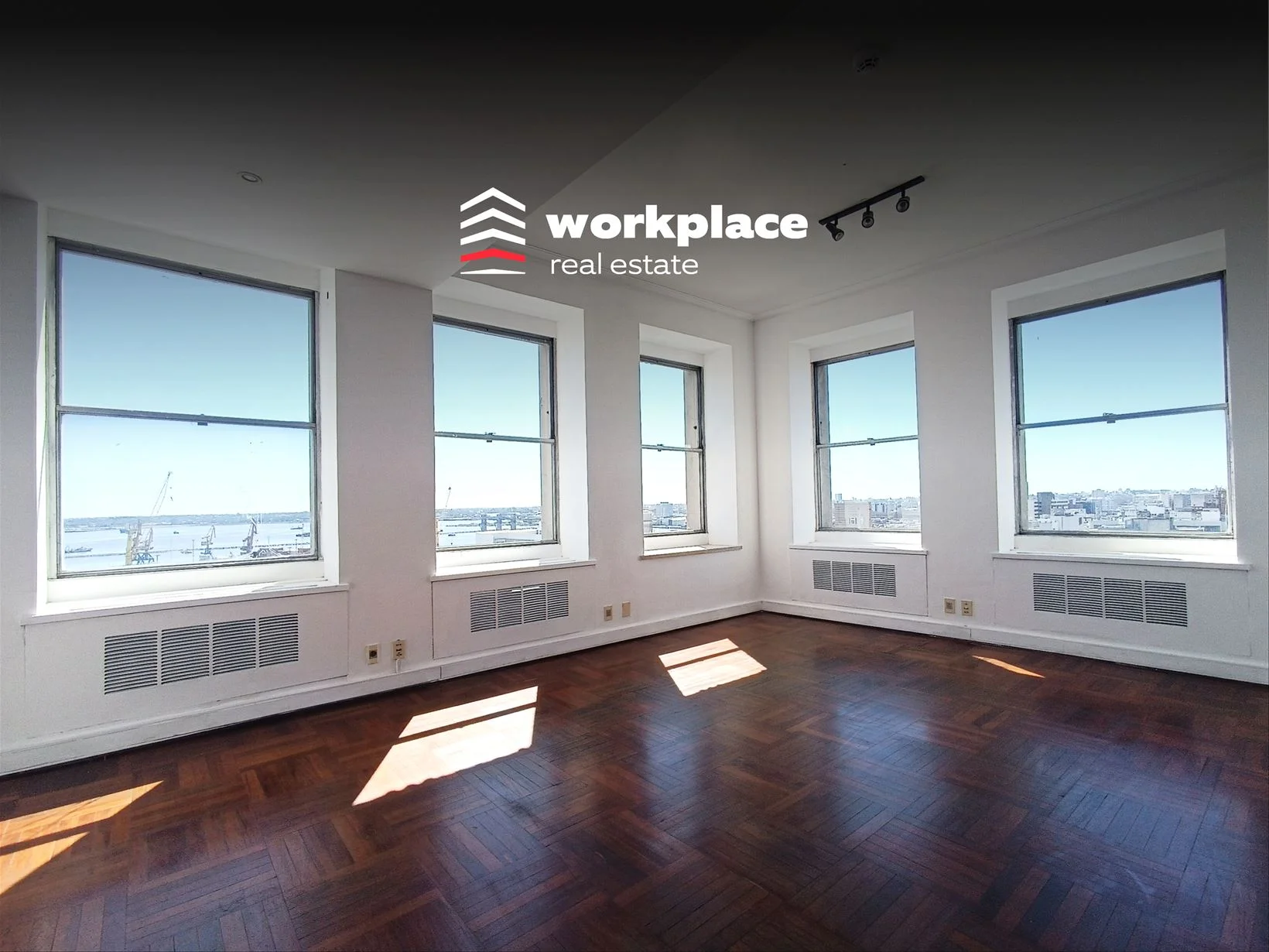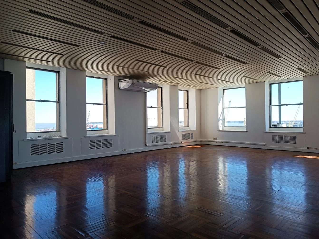 Amplia oficina con gran luminosidad en un emblemático edificio de la Ciudad Vieja, esta oficina se ubica en un piso alto, ofreciendo
