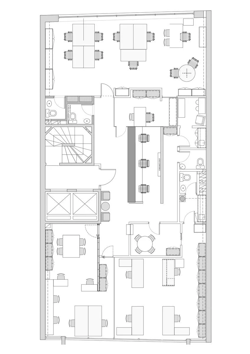 Esta oficina ofrece un diseño funcional y moderno que combina espacios de trabajo abiertos, oficinas privadas y áreas de reunión, creando un ambiente dinámico y adaptable a distintas necesidades.